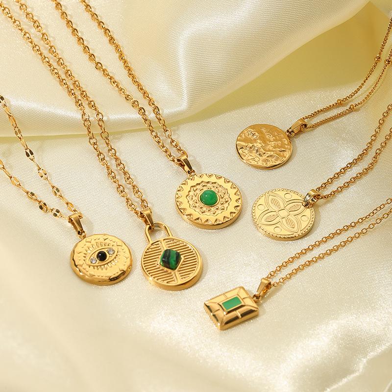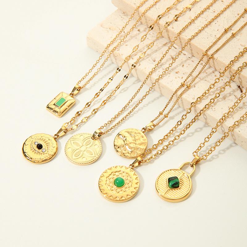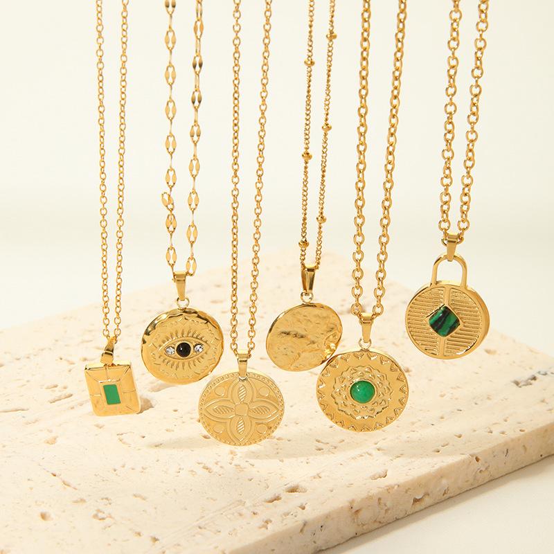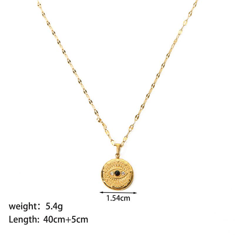 Collar de acero de titanio nuevo europeo y americano para mujer, colgante de ojo del diablo redondo combinable, joyería de acero inoxidable, collar de oro de 18 quilates