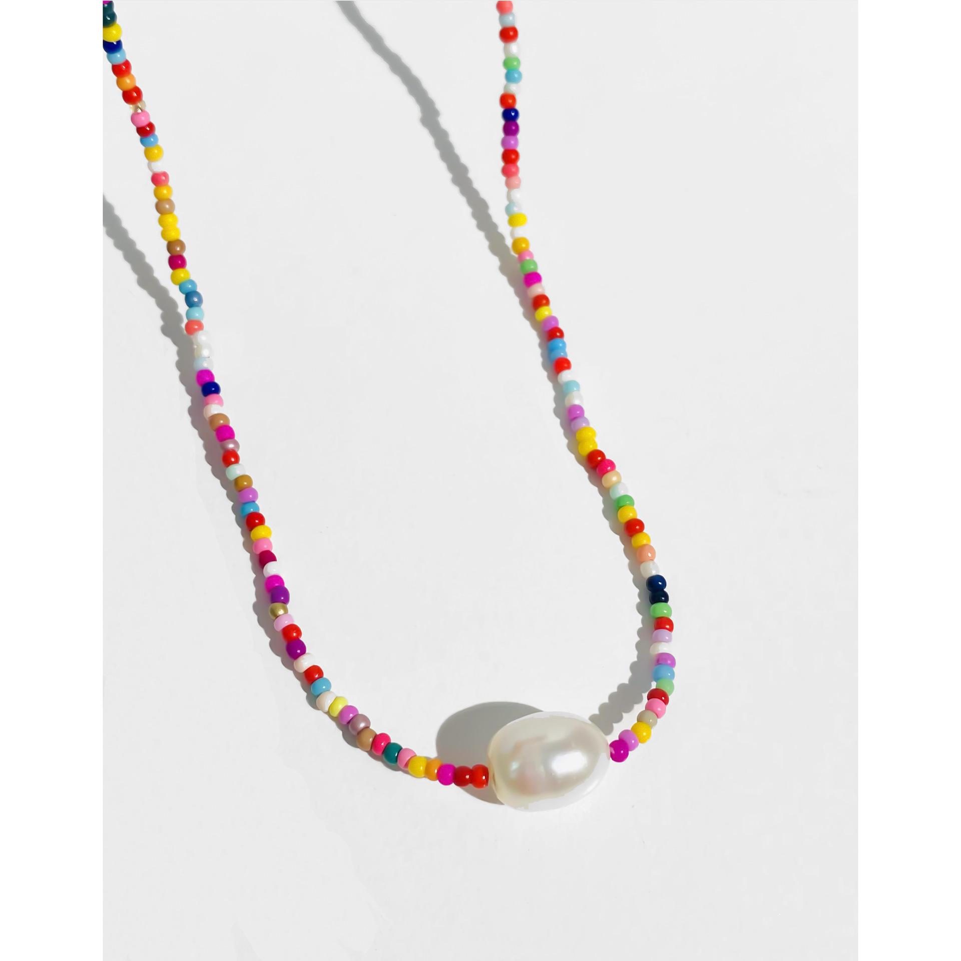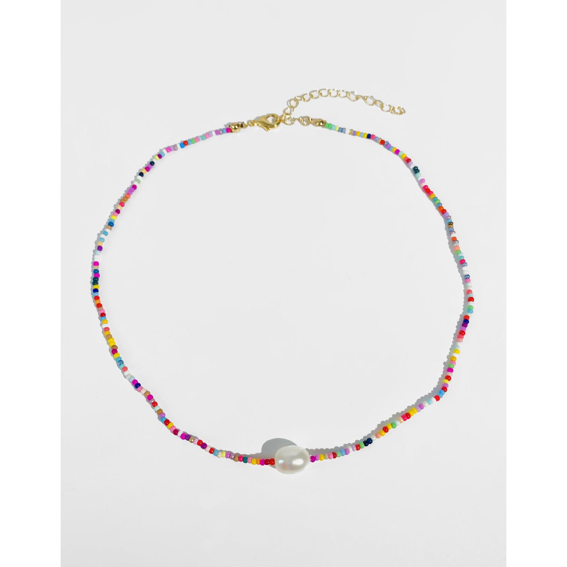 Collar de perlas naturales de colores, hecho a mano, estilo bohemio, cadena de clavícula sencilla y dulce para playa.