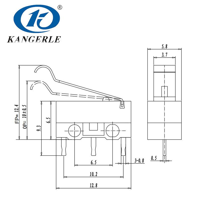 Interruptor micro de tres pines con mango doblado, microinterruptor pequeño, microinterruptor doble