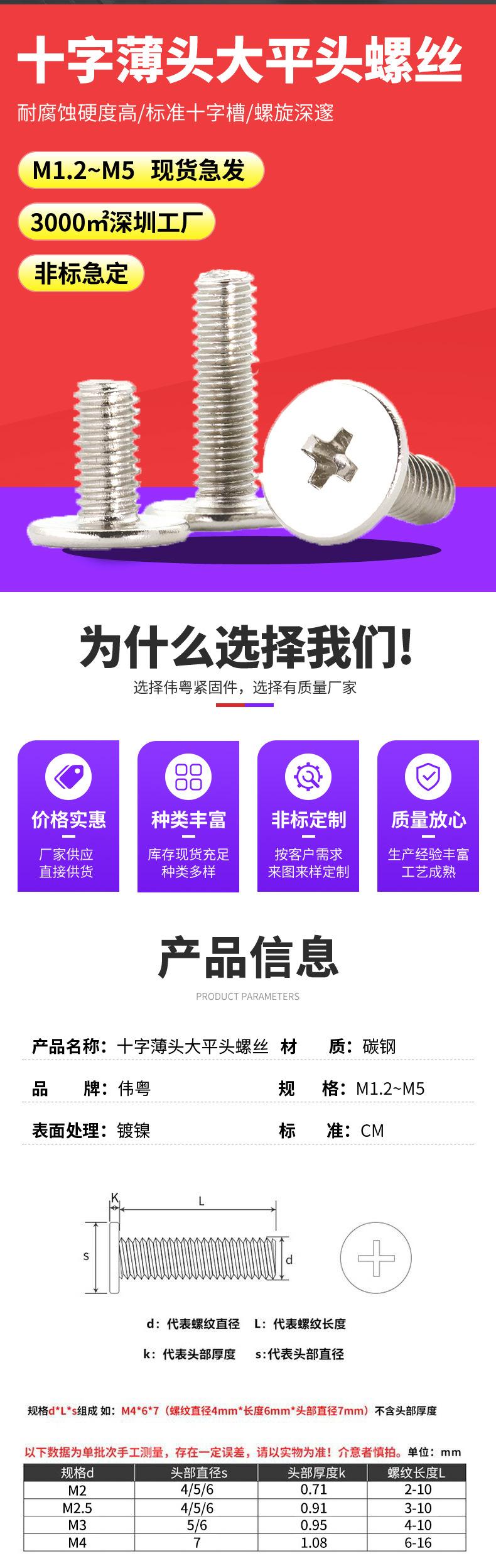 Tornillo pequeño de cabeza fina CM niquelado, tornillo pequeño, tornillo de cabeza plana grande, tornillo de cabeza plana cruzada M1.2/M1.6/M2.5