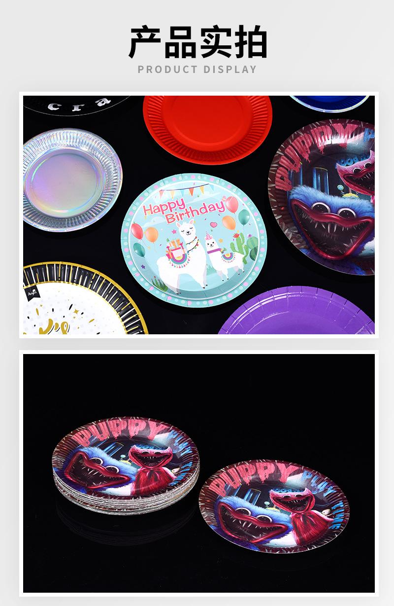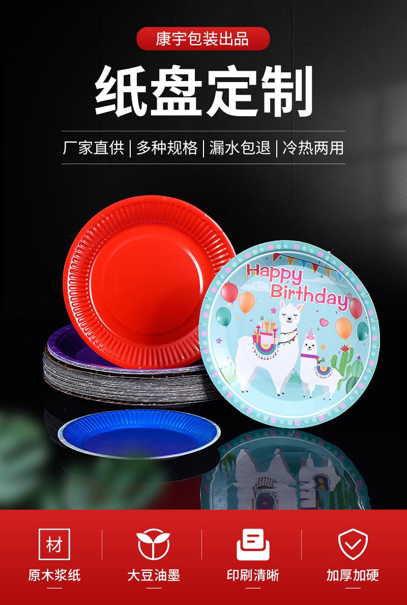 Plato de papel desechable para fiesta de cumpleaños, plato de papel DIY, disco de color, fiesta navideña, pastel, plato de comida rápida, venta al por mayor