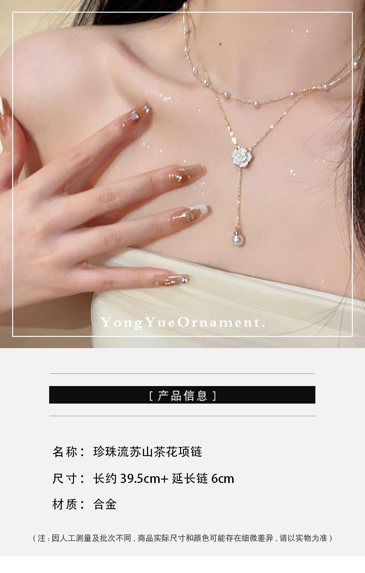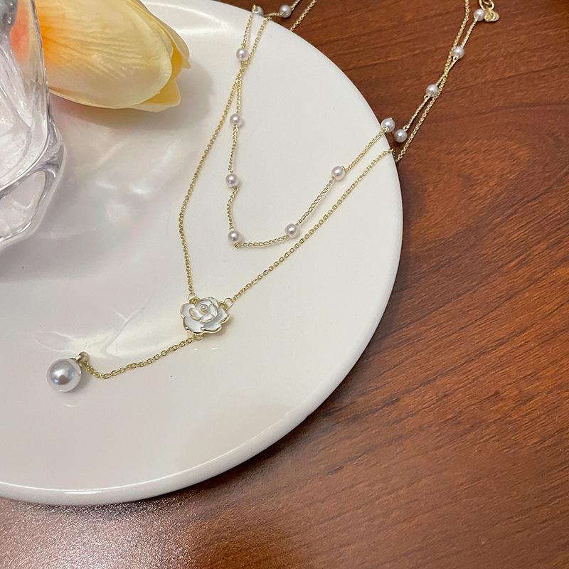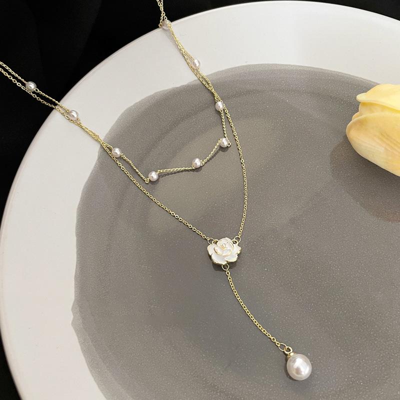 Collar de Perlas con Borla de Doble Capa para Mujer, Diseño Nicho, Clavícula Camelia, Lujo Accesible, Cuello con Cuentas