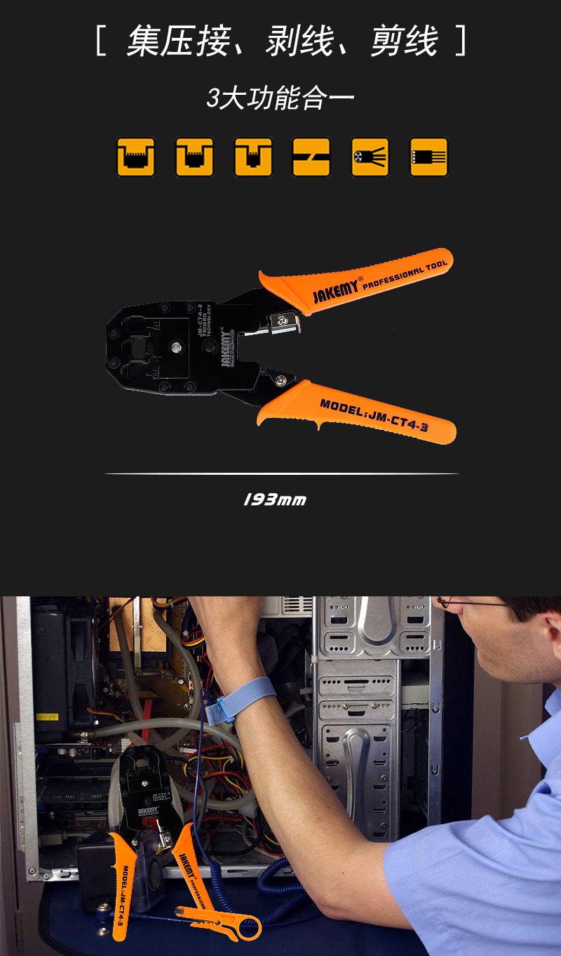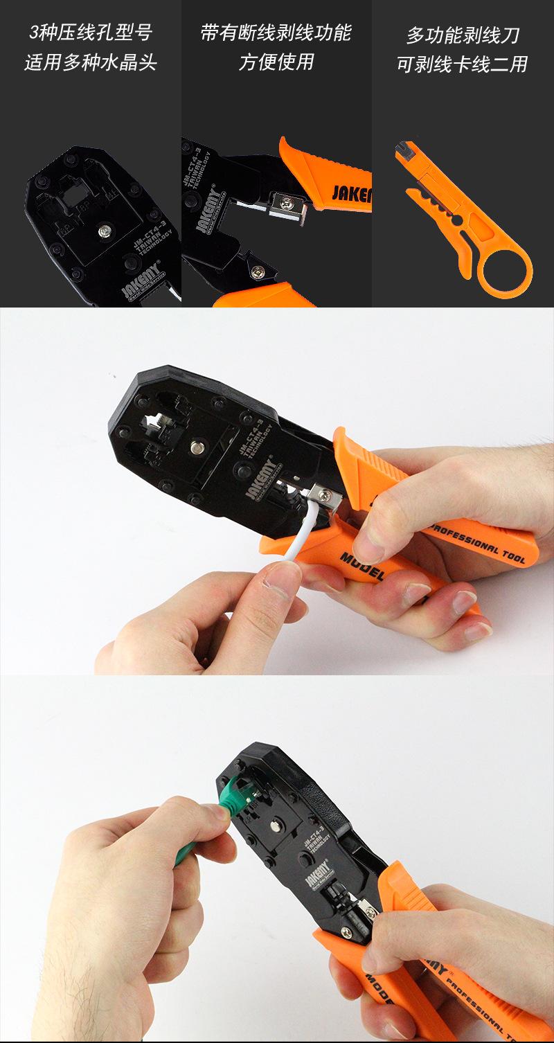Alicates multifunción para cable de red JM-CT4-3, alicates de prensado de línea telefónica, alicates de crimpado de red Crystal Head