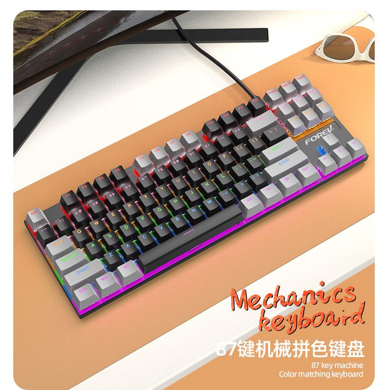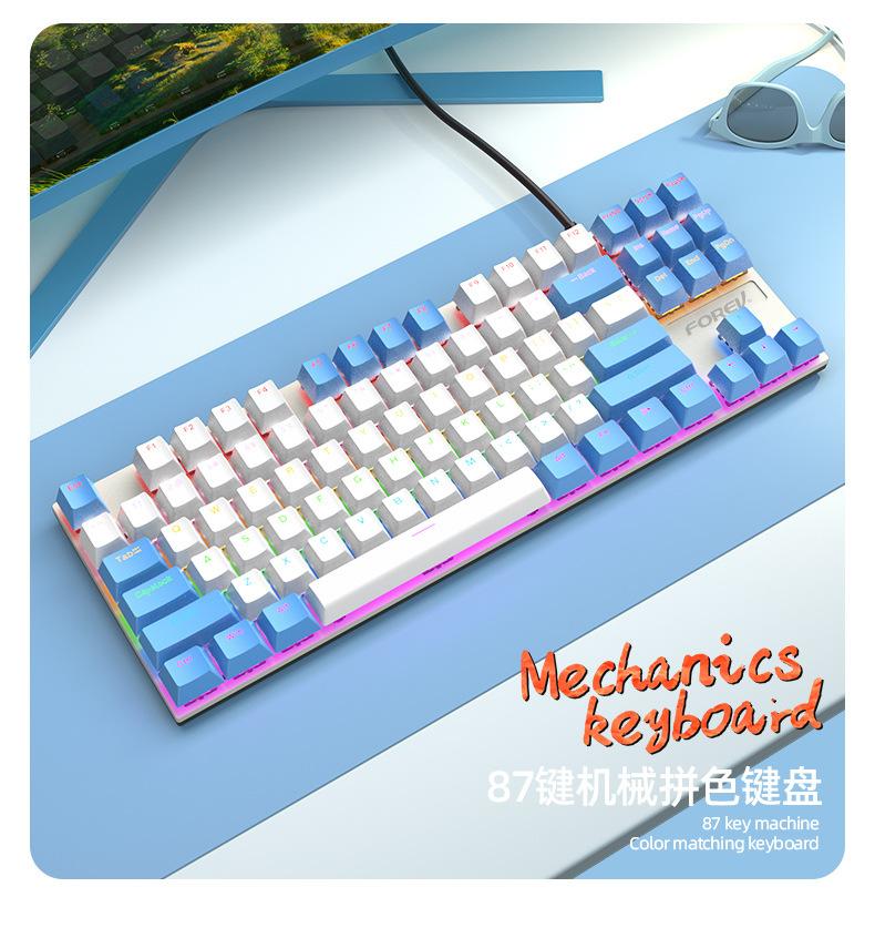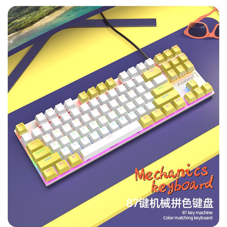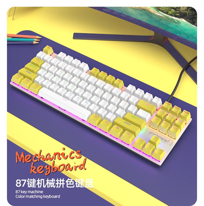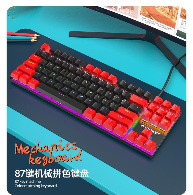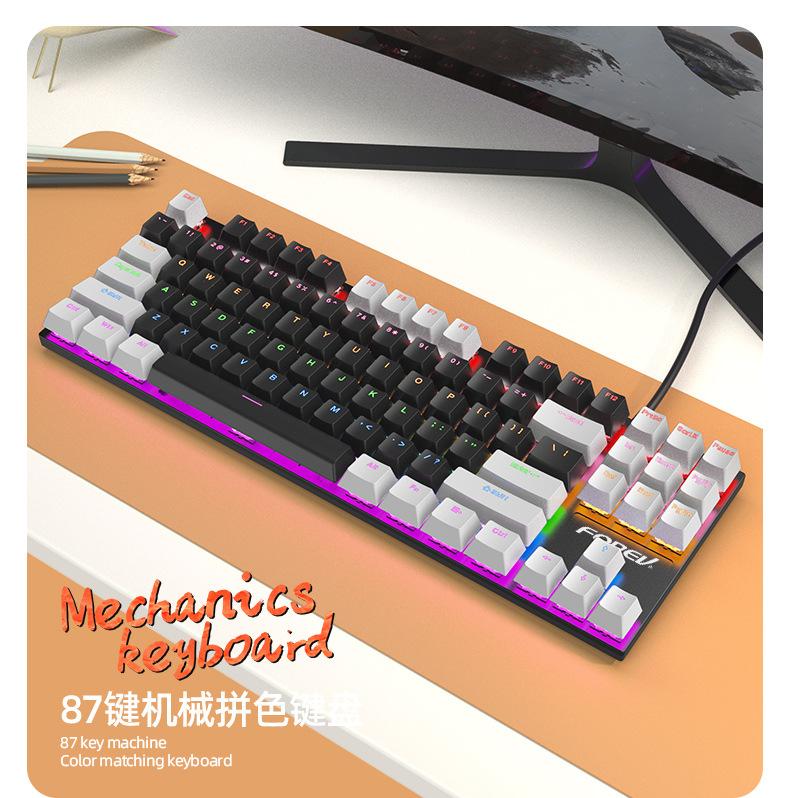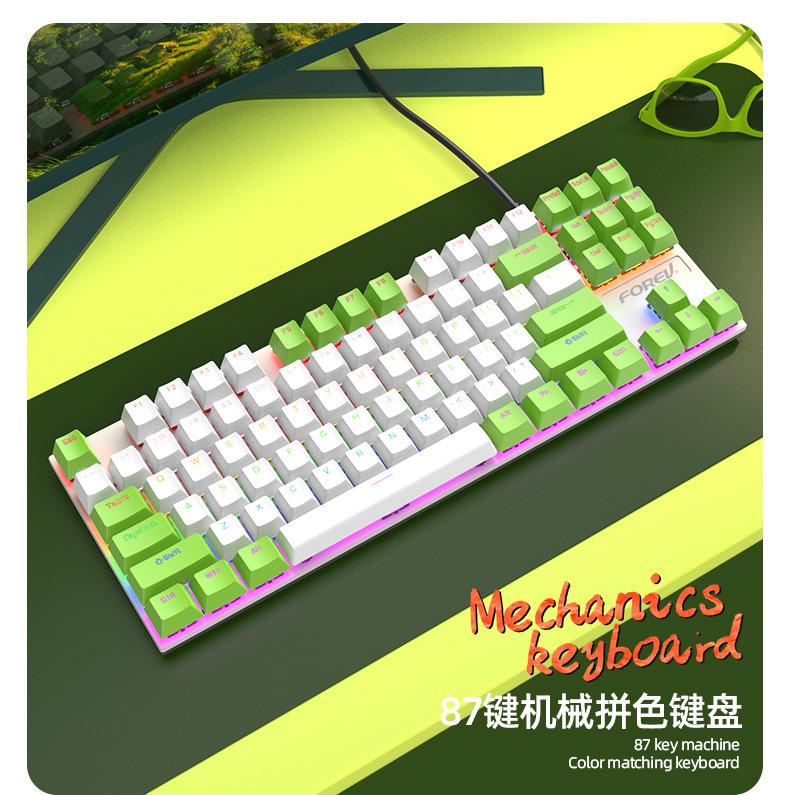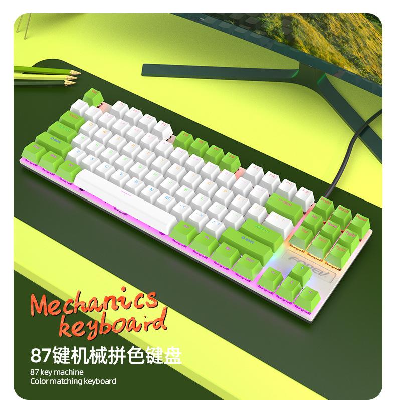 Teclado Mecánico de 87 Teclas con Combinación de Colores Personalizado Fvq301 Eje Plug-In Eje Verde Gaming E-Sports Luminoso Alámbrico Teclado Mecánico