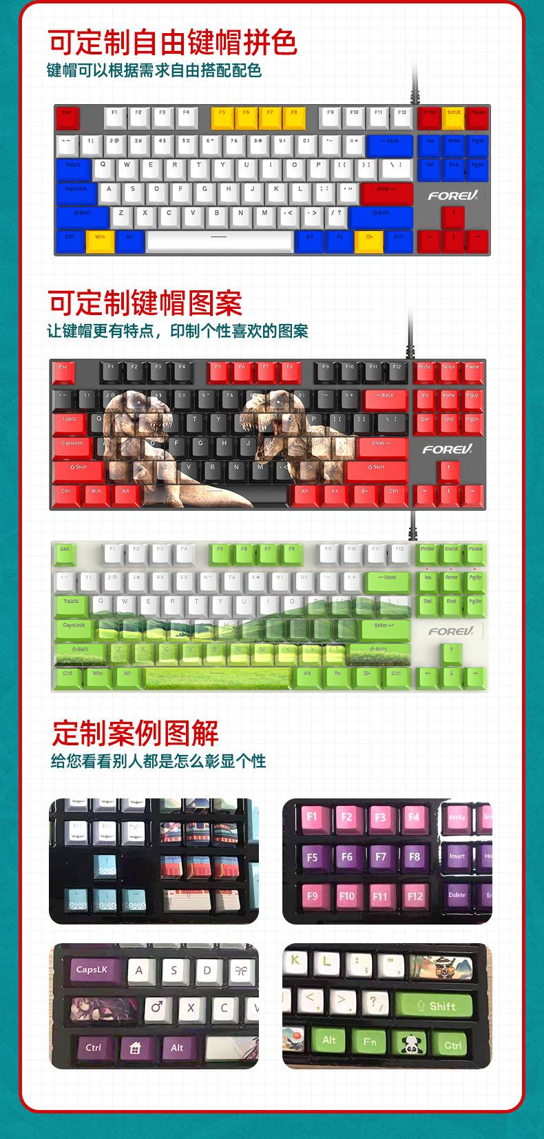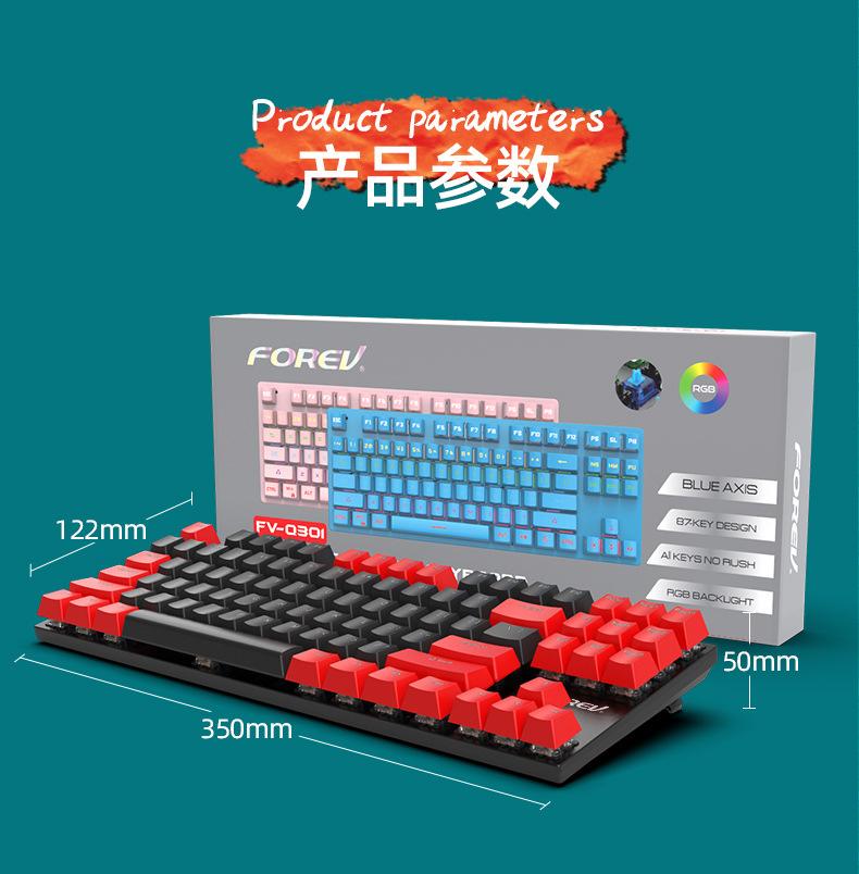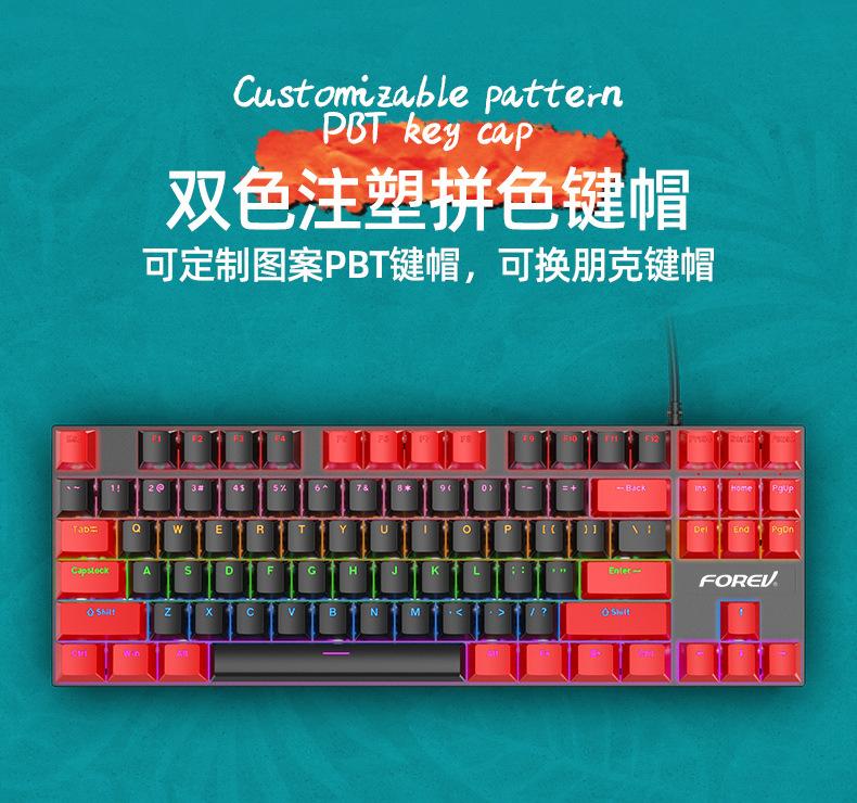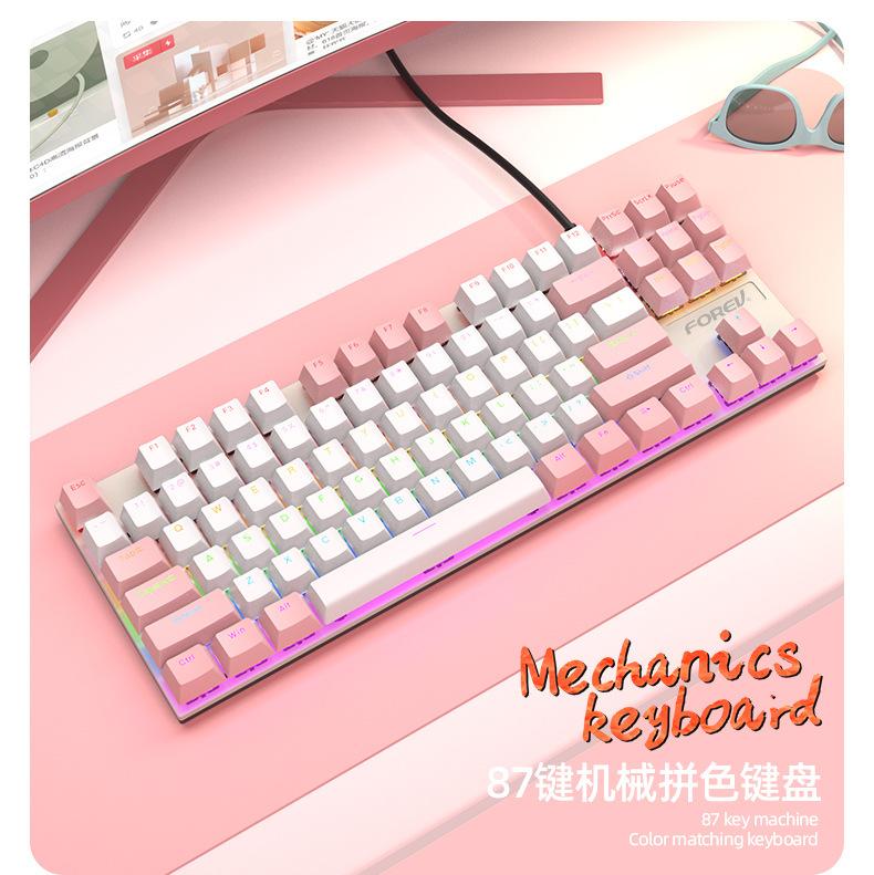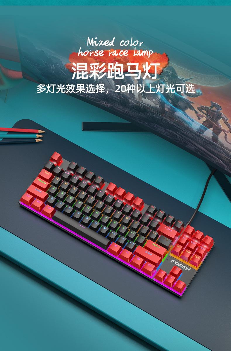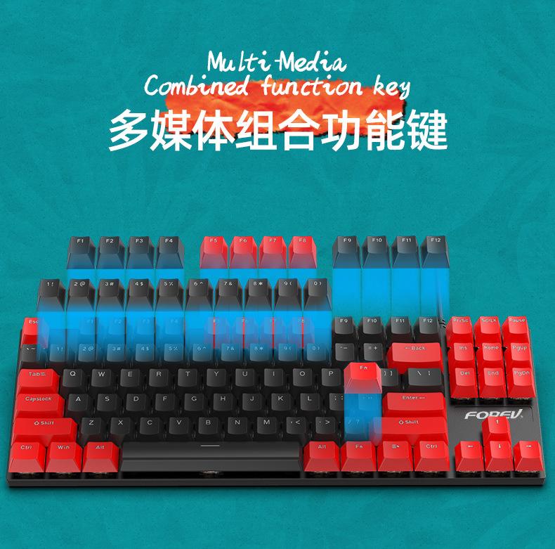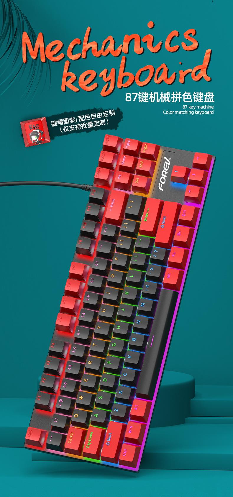 Teclado Mecánico de 87 Teclas con Combinación de Colores Personalizado Fvq301 Eje Plug-In Eje Verde Gaming E-Sports Luminoso Alámbrico Teclado Mecánico
