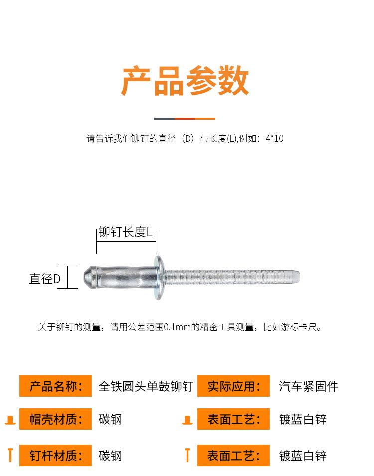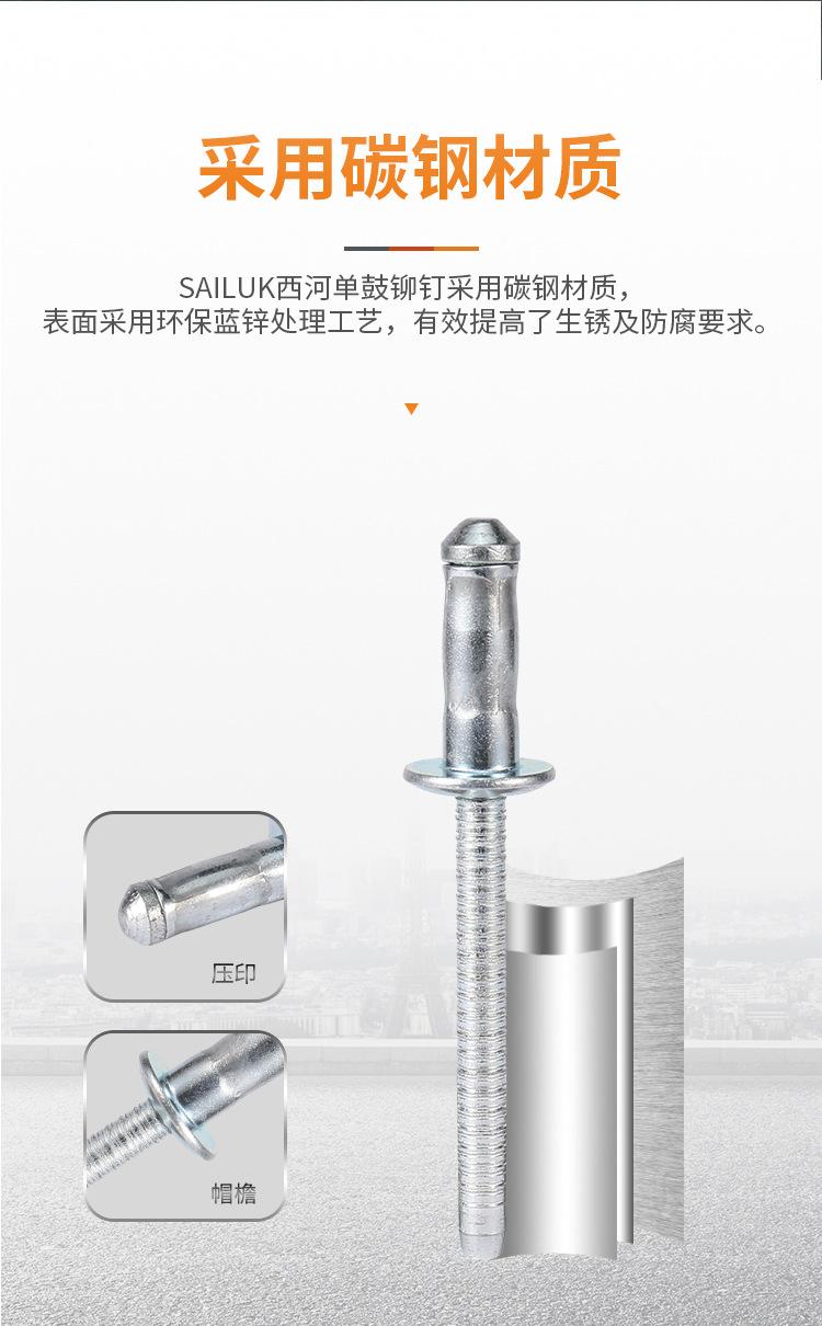 Remaches de un tambor de hierro forjado Acero al carbono Remaches de un tambor Zinc azul y blanco Hierro galvanizado Remaches de una sola hebra