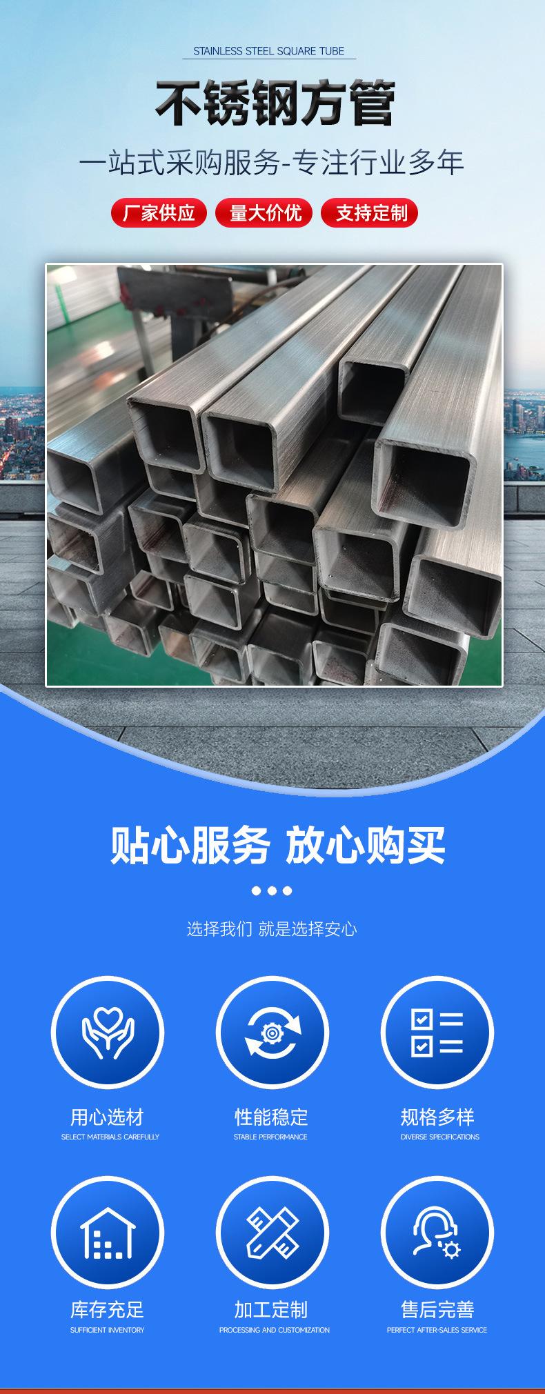 Tubo de acero inoxidable de suministro puntual, tubo cuadrado de acero inoxidable 201, tubo rectangular de acero inoxidable, tubo de acero cepillado pulido espejo