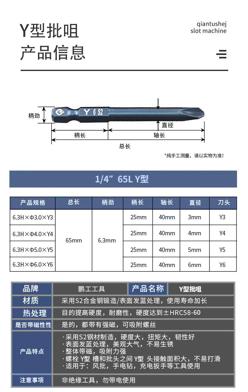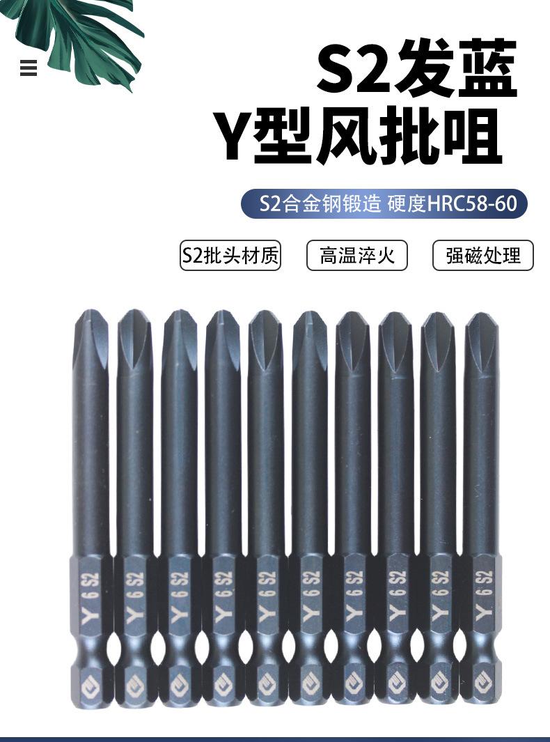 Punta de destornillador neumático de cabeza simple triangular en forma de Y de material Penggong S2 50 mm neumática endurecida magnética fuerte fábrica de puntas de destornillador eléctrico
