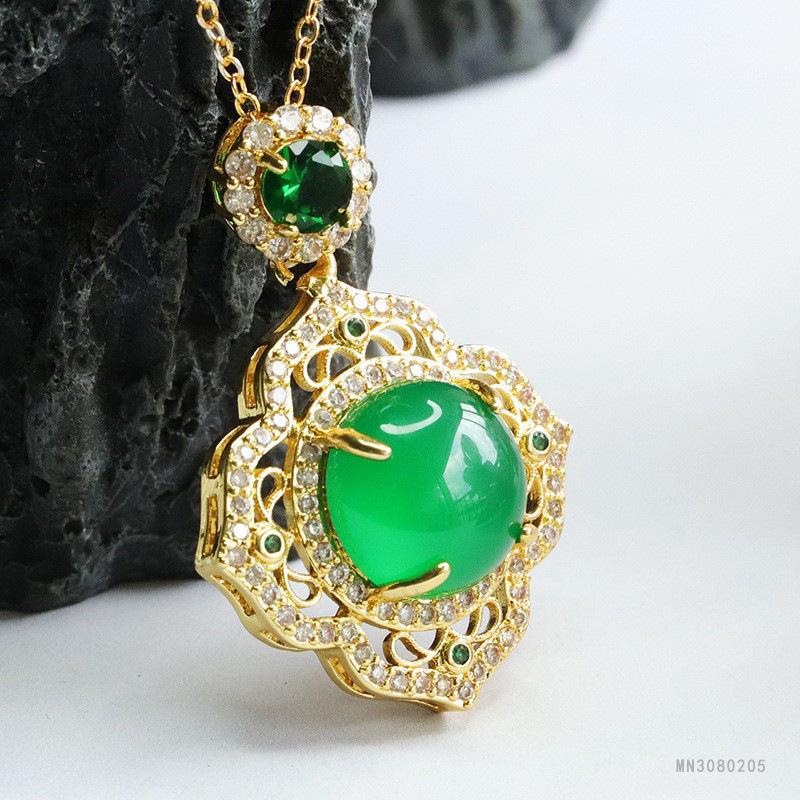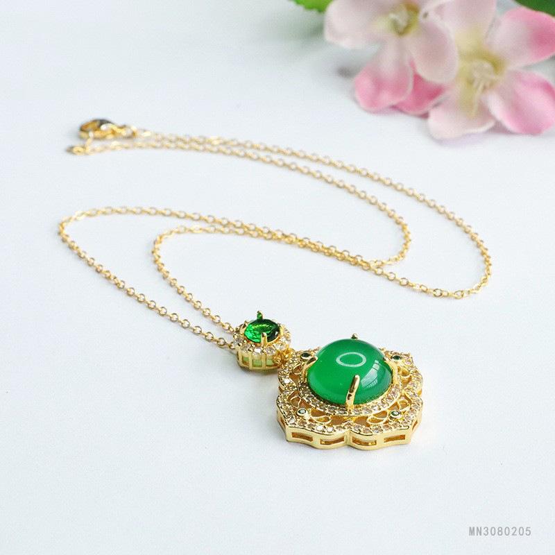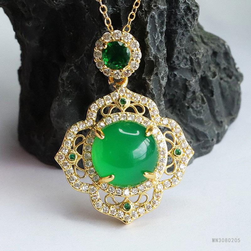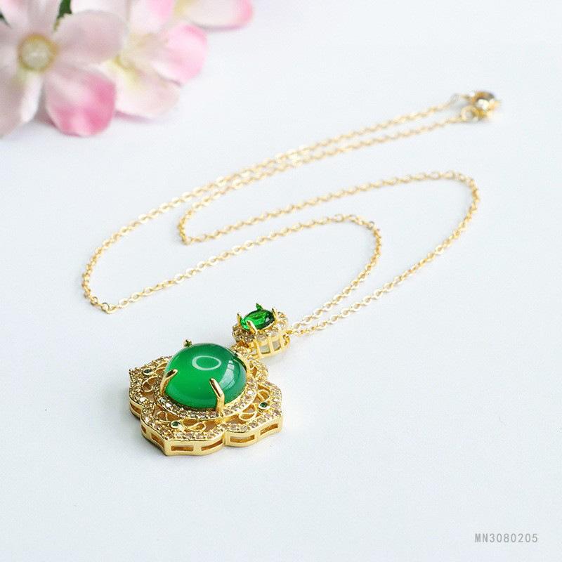 Colgante de calcedonia verde yuyu ágata verde imperial pétalo collar mujeres fábrica venta al por mayor generación MN3080205