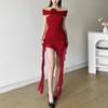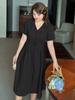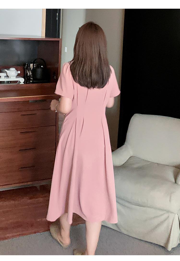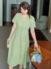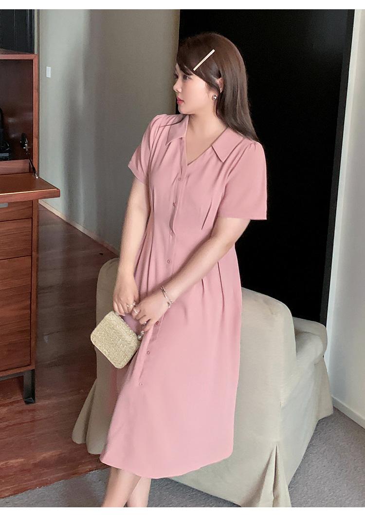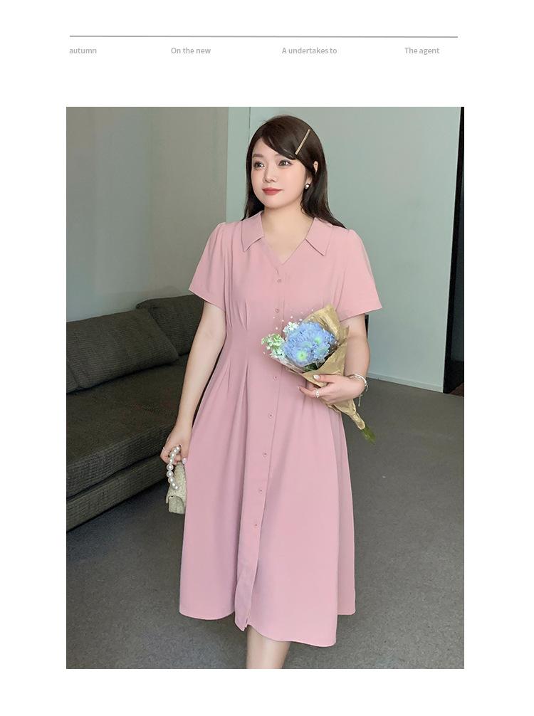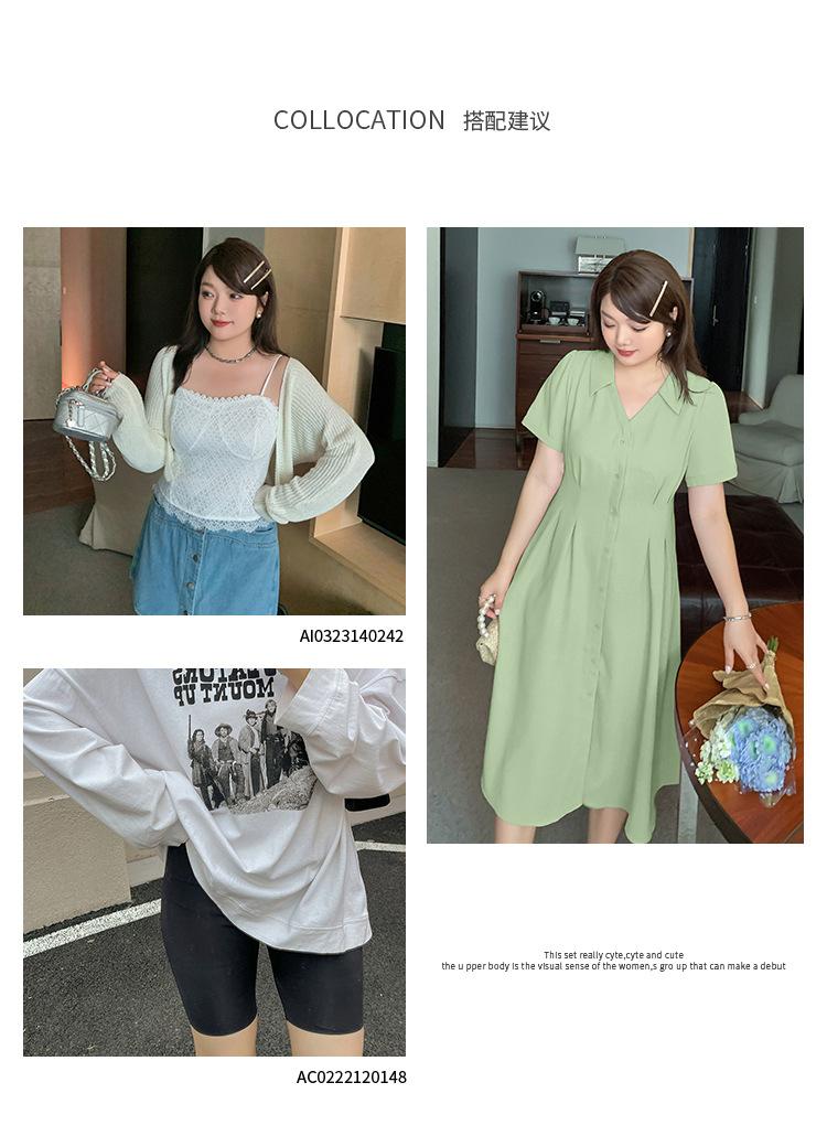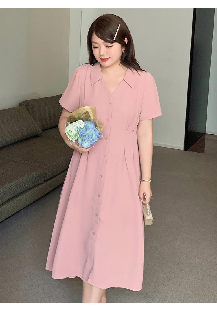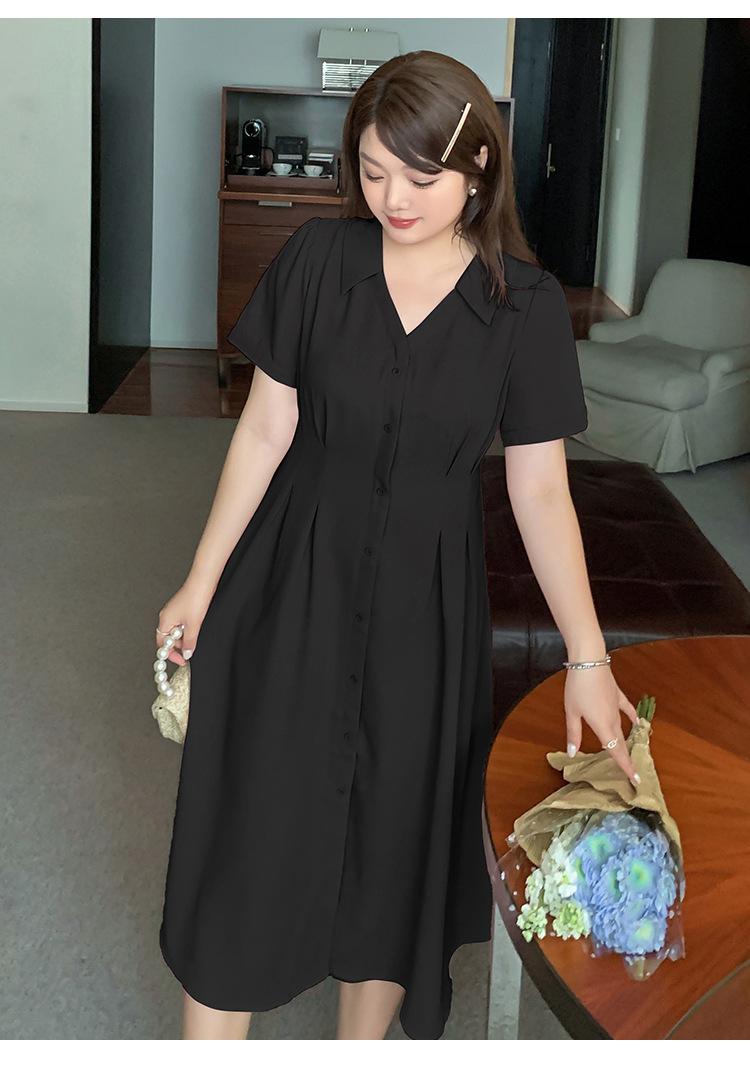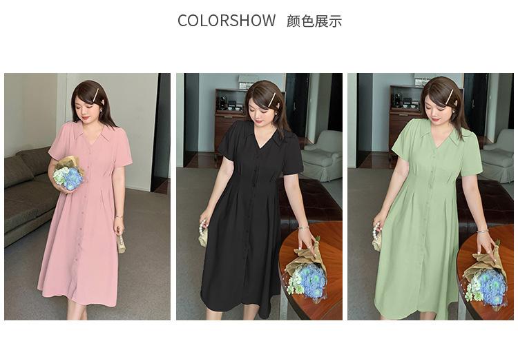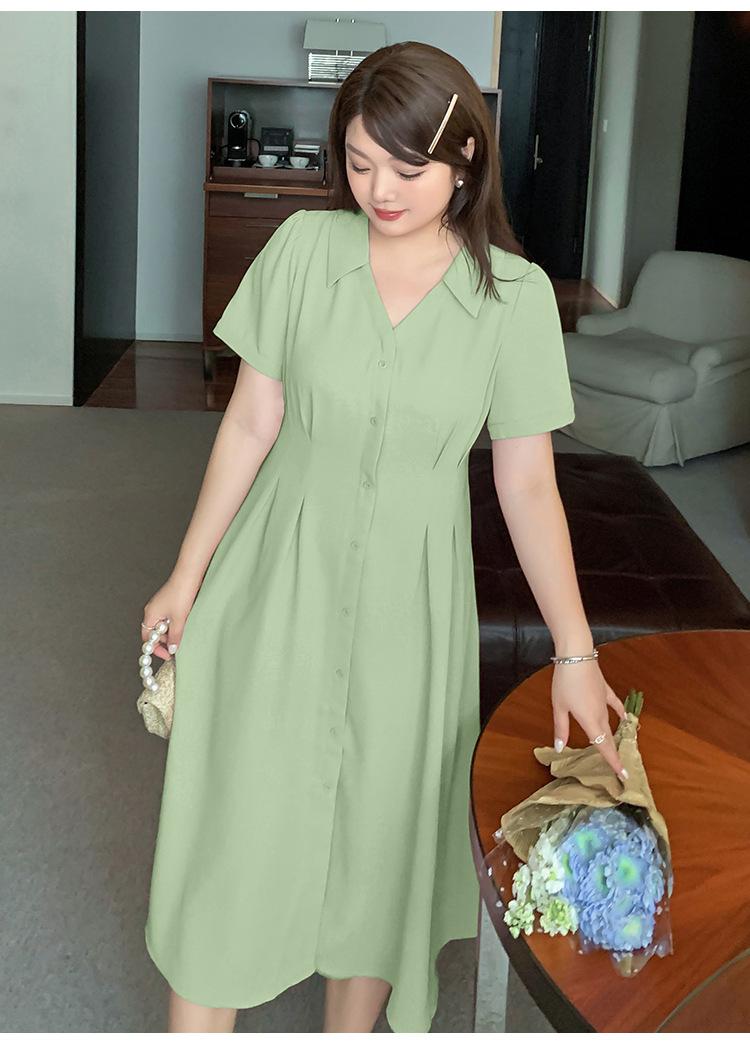 Vestido de verano con escote en V y cintura ajustada para hermana mayor, falda larga con temperamento para chica gordita 230368