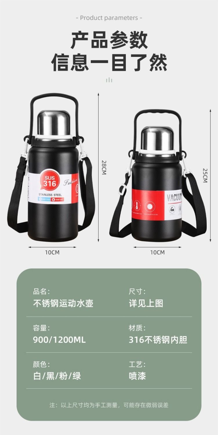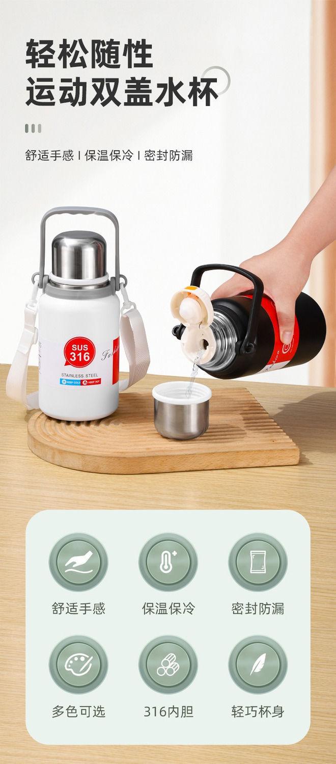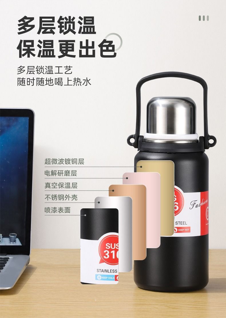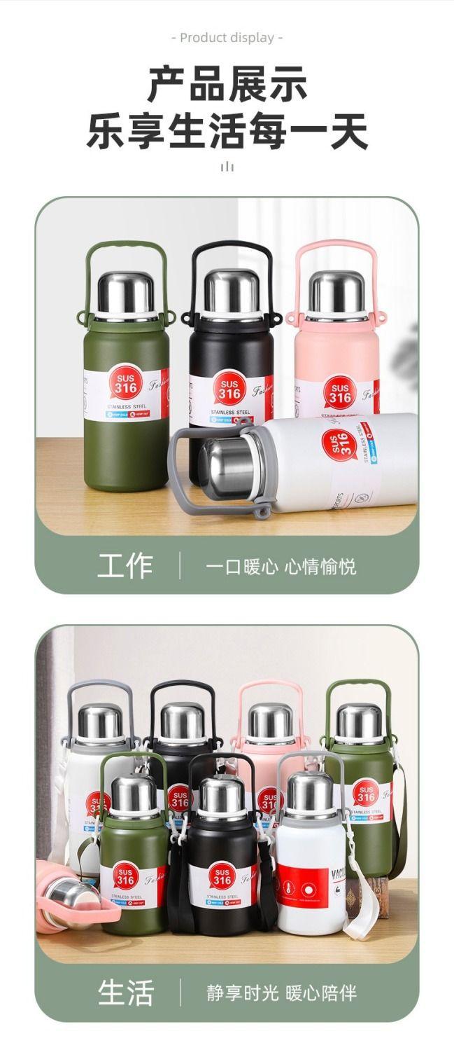 Termo de acero inoxidable 316 de gran capacidad, portátil, para exteriores, para uso doméstico, para estudiantes, práctico para deportes.