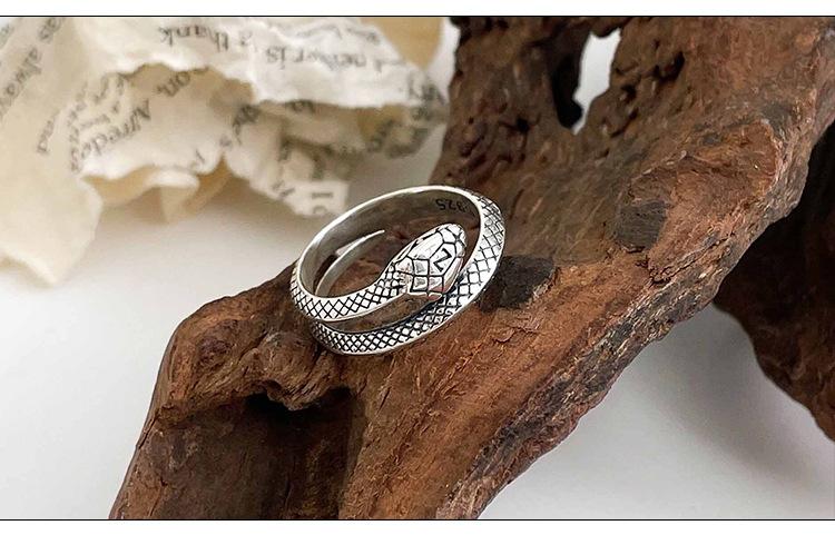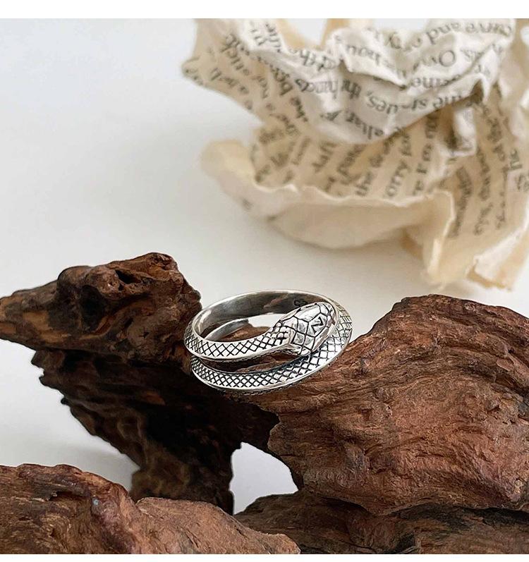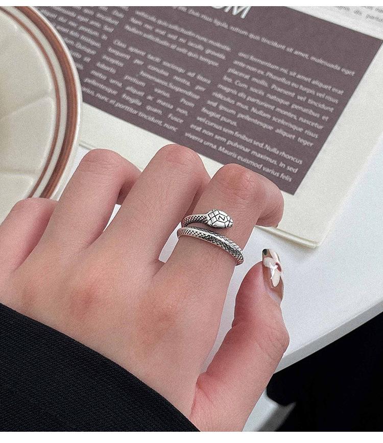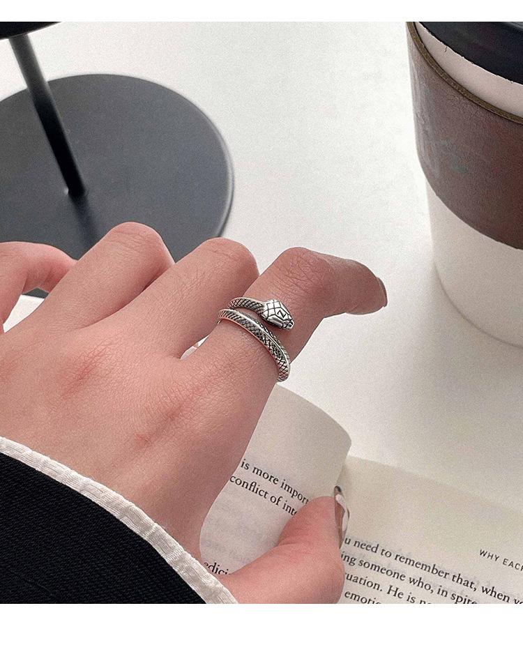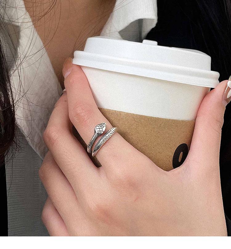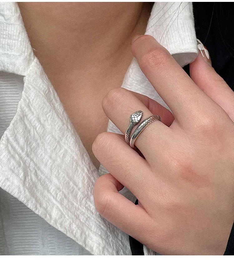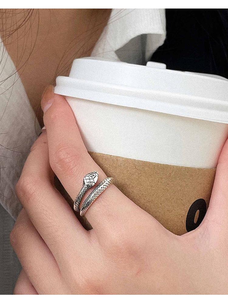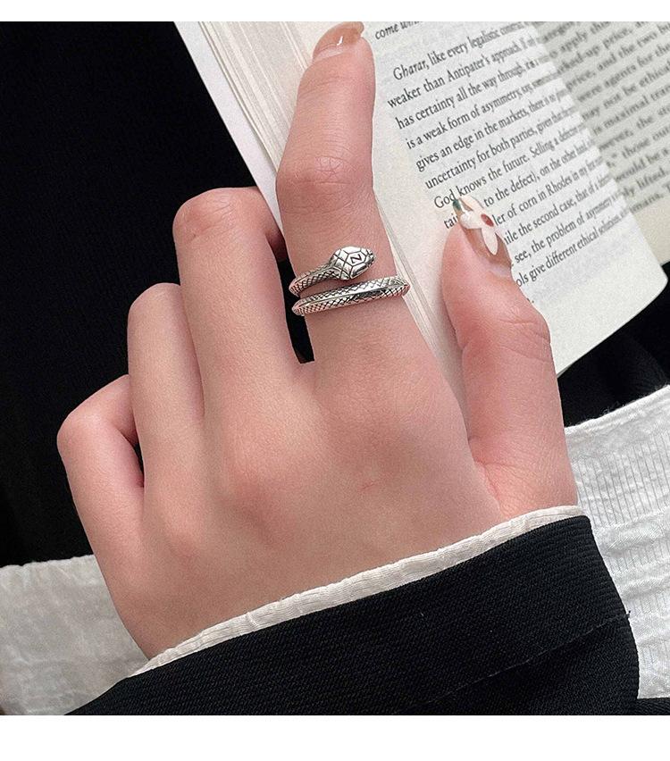 Anillo de plata Ruitai S925 con diseño de serpiente y cruz abierta para mujer, ligero, lujoso, con personalidad exquisita y de alta gama.