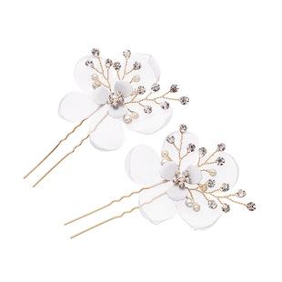 Joyería nupcial simple tocado de boda flor de tela hecha a mano horquilla de perlas accesorios para el cabello accesorios de boda al por mayor