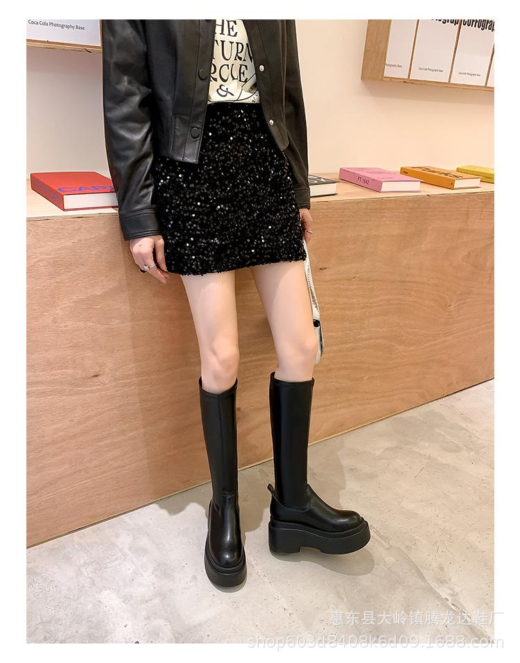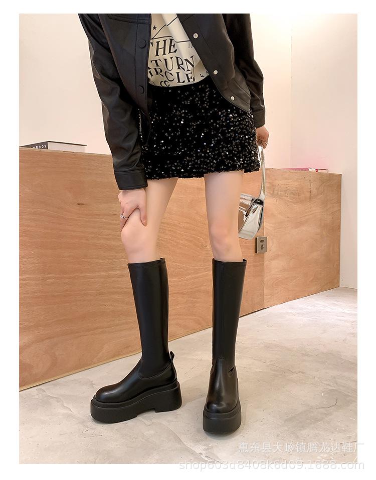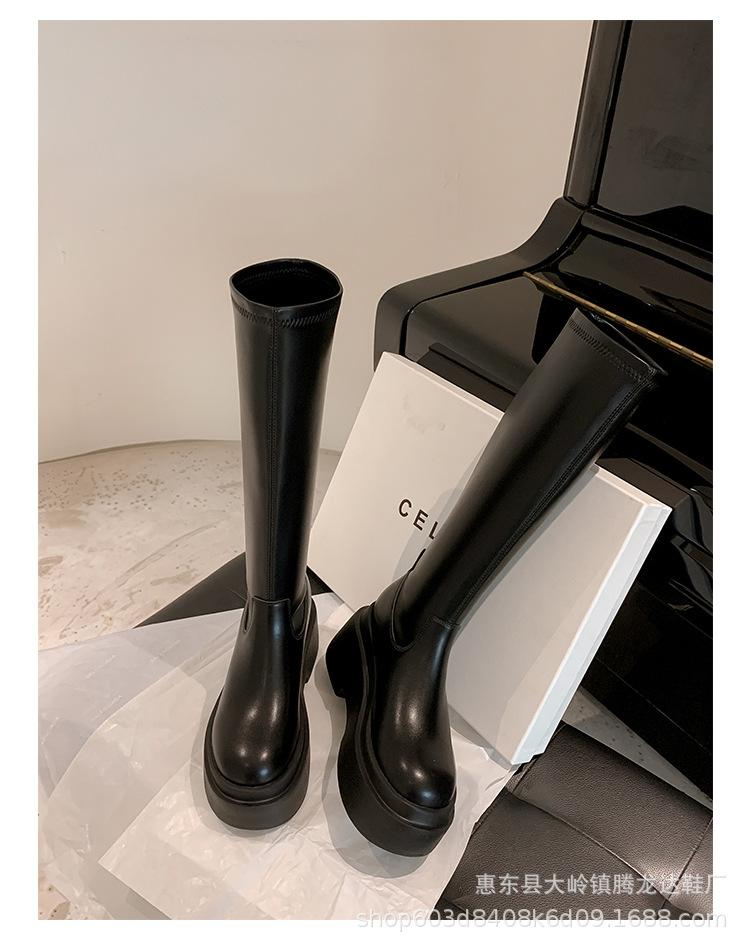 Botas Largas para Mujer, Botas Elásticas, Otoño e Invierno Plus Terciopelo, Suelas Gruesas, Botines, Botas Ajustadas, Botas de Caballero para Chica Caliente