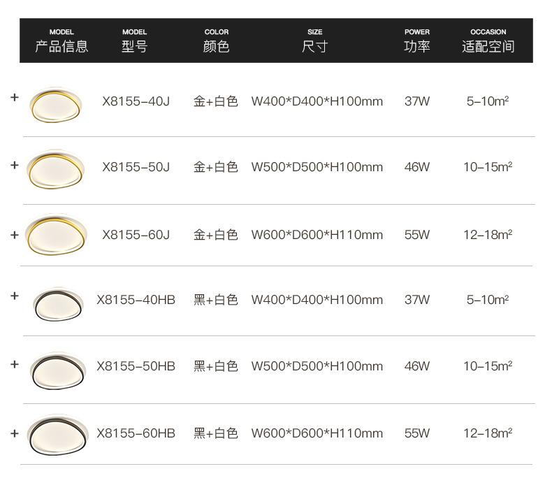 Gold White diameter 40CM36W, Black and white diameter 40CM36W, Gold White diameter 50CM46W, Black and white di...