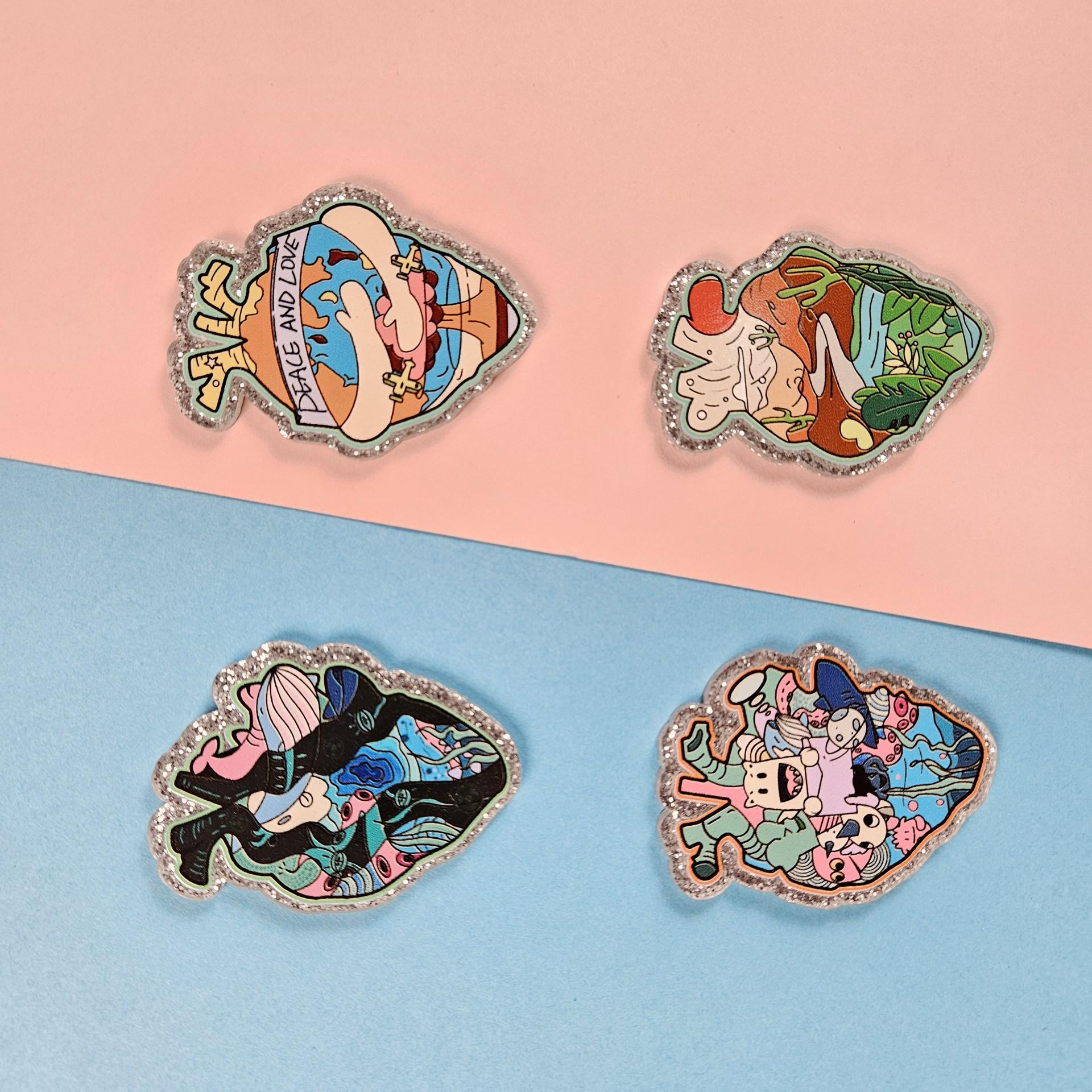 2024 Nuevos accesorios de joyería con brillo acrílico, hebilla de fácil extracción, accesorios retráctiles giratorios, accesorios Happy Planet