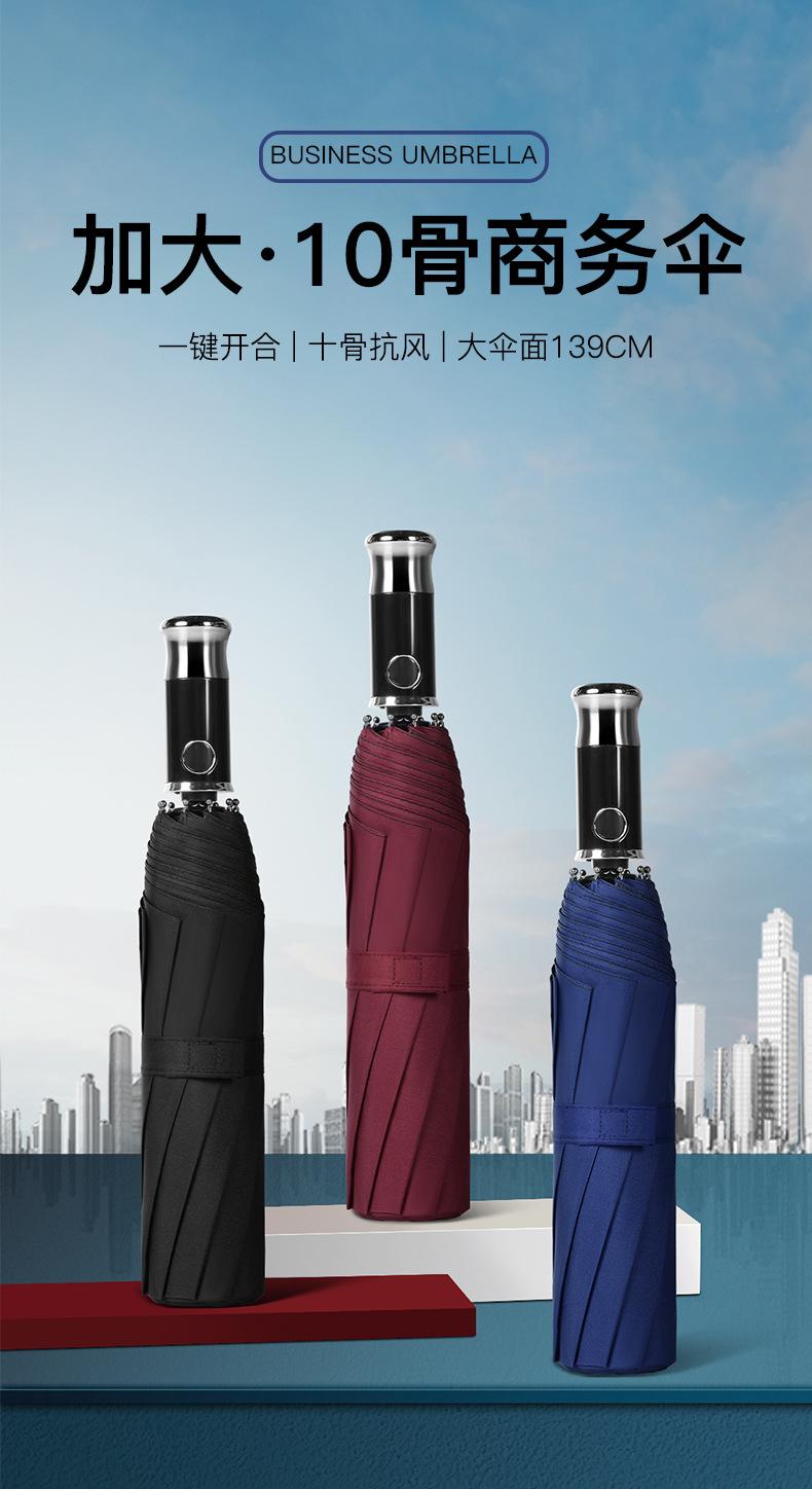 Paraguas extragrande de diez varillas, plegable en tres partes, paraguas plegable para hombre de negocios, paraguas con protección solar, paraguas automático, paraguas publicitario con LOGO personalizado
