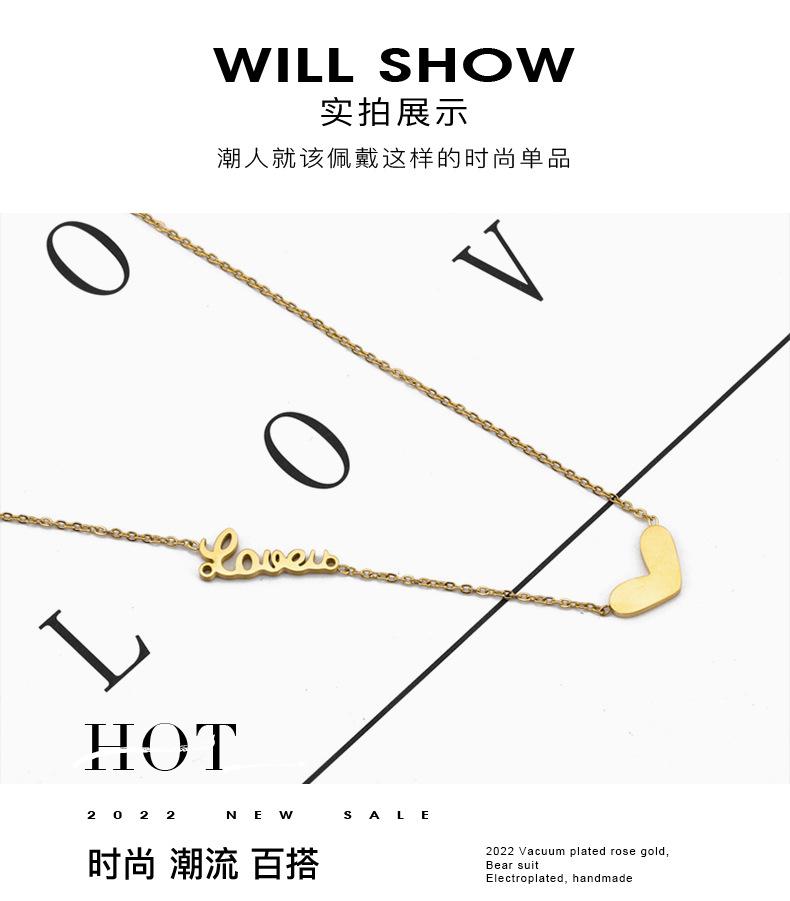 Collar sencillo con letra LOVE dorada pequeña de acero de titanio para mujer, versátil, elegante y moderno, cadena de clavícula con letras LOVE, resistente al color.