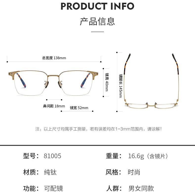 Nuevas gafas para miopía de titanio puro 81005, estilo retro, de media montura, antiluz azul.