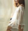 Lencería Sexy de Comercio Exterior Transfronterizo Conjunto de Camisón Sexy Europeo y Americano con Hombros Descubiertos Malla Transparente Pestañas Envío Directo