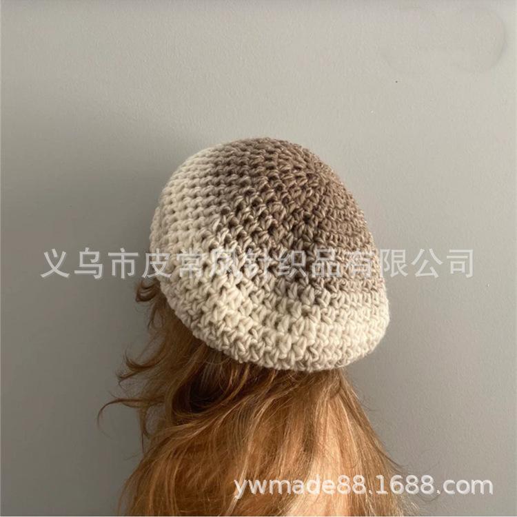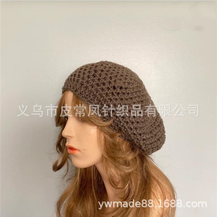 Boina coreana tejida a mano, retro, combinable, para pintor literario, gorro de lana para niñas, hueco y transpirable