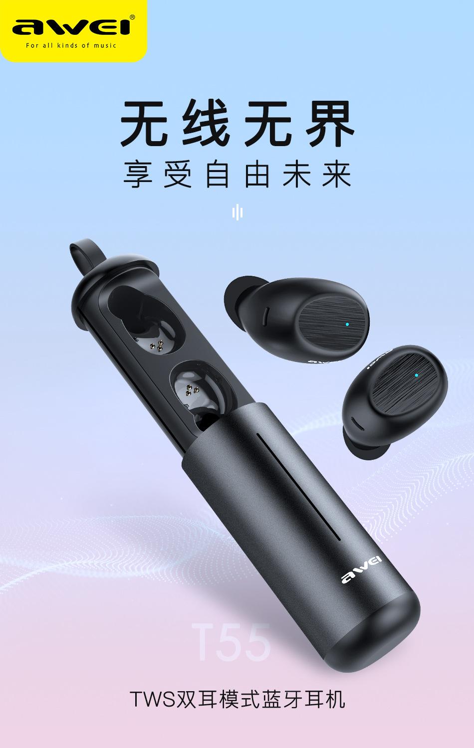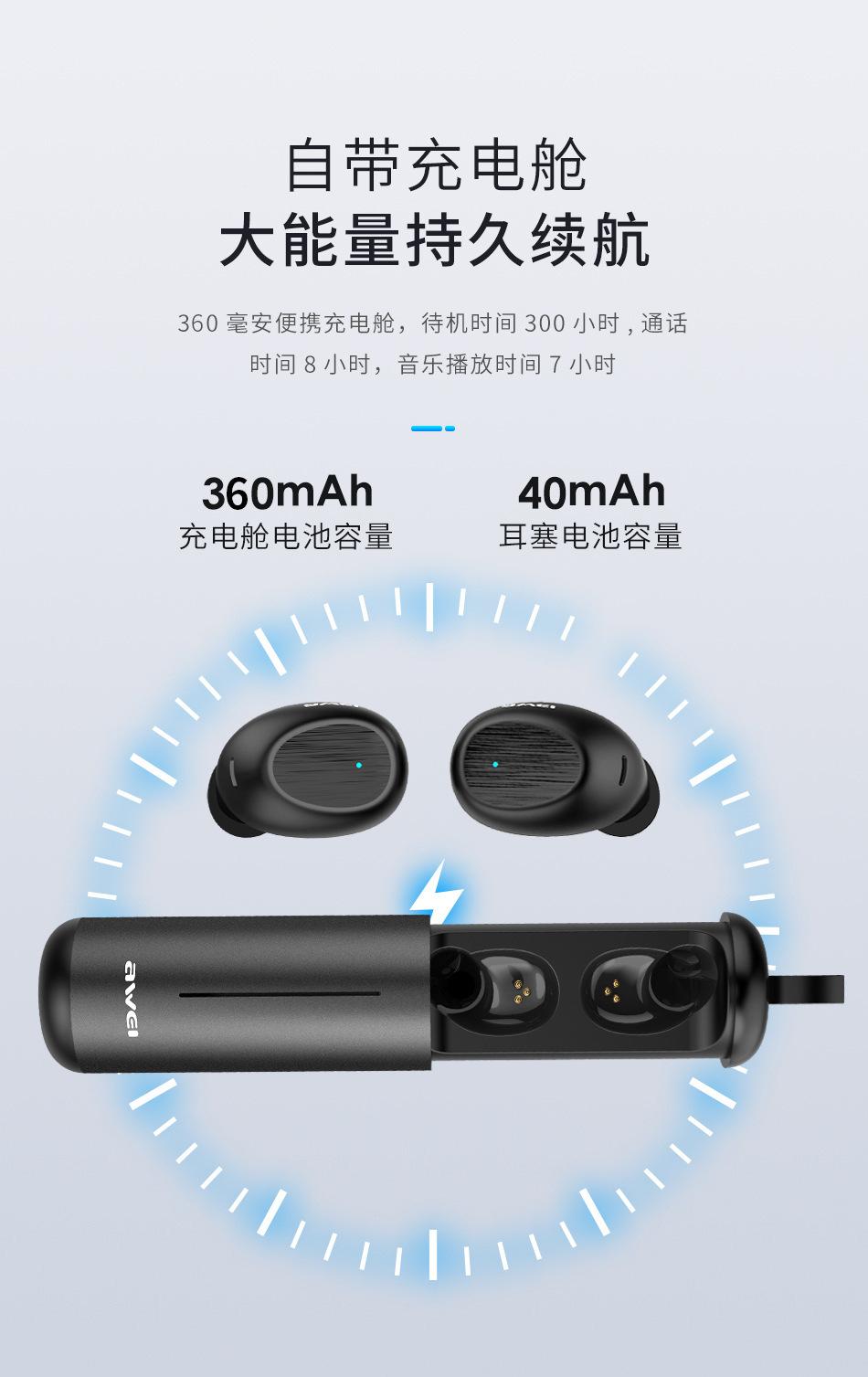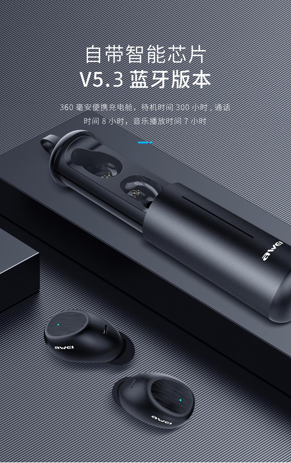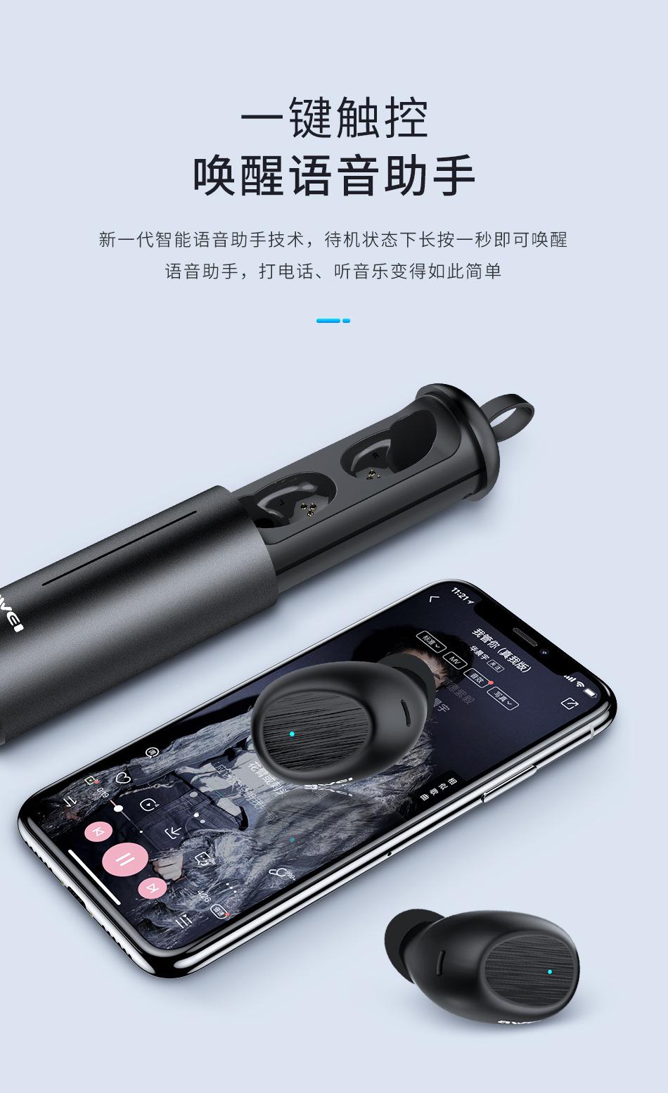 Awei Audífonos TWS Bluetooth de Larga Duración en Espera con Control Táctil para Android, Deportes, Verdaderamente Inalámbricos, Larga Duración de Batería