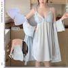 Pijama de Seda de Hielo para Mujer de Tres Piezas Primavera y Otoño Nuevo Sexy Camisón con Tirantes Pantalones Encaje Dulce Ropa Casual para el Hogar