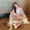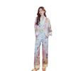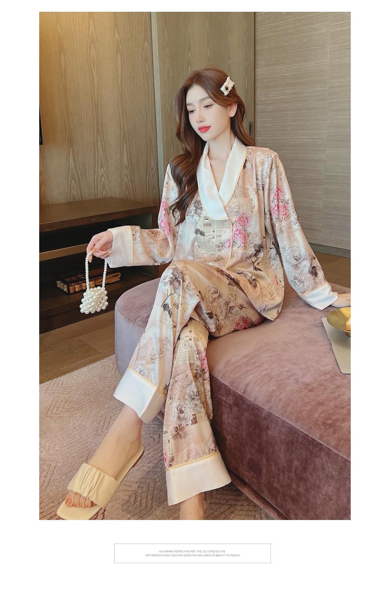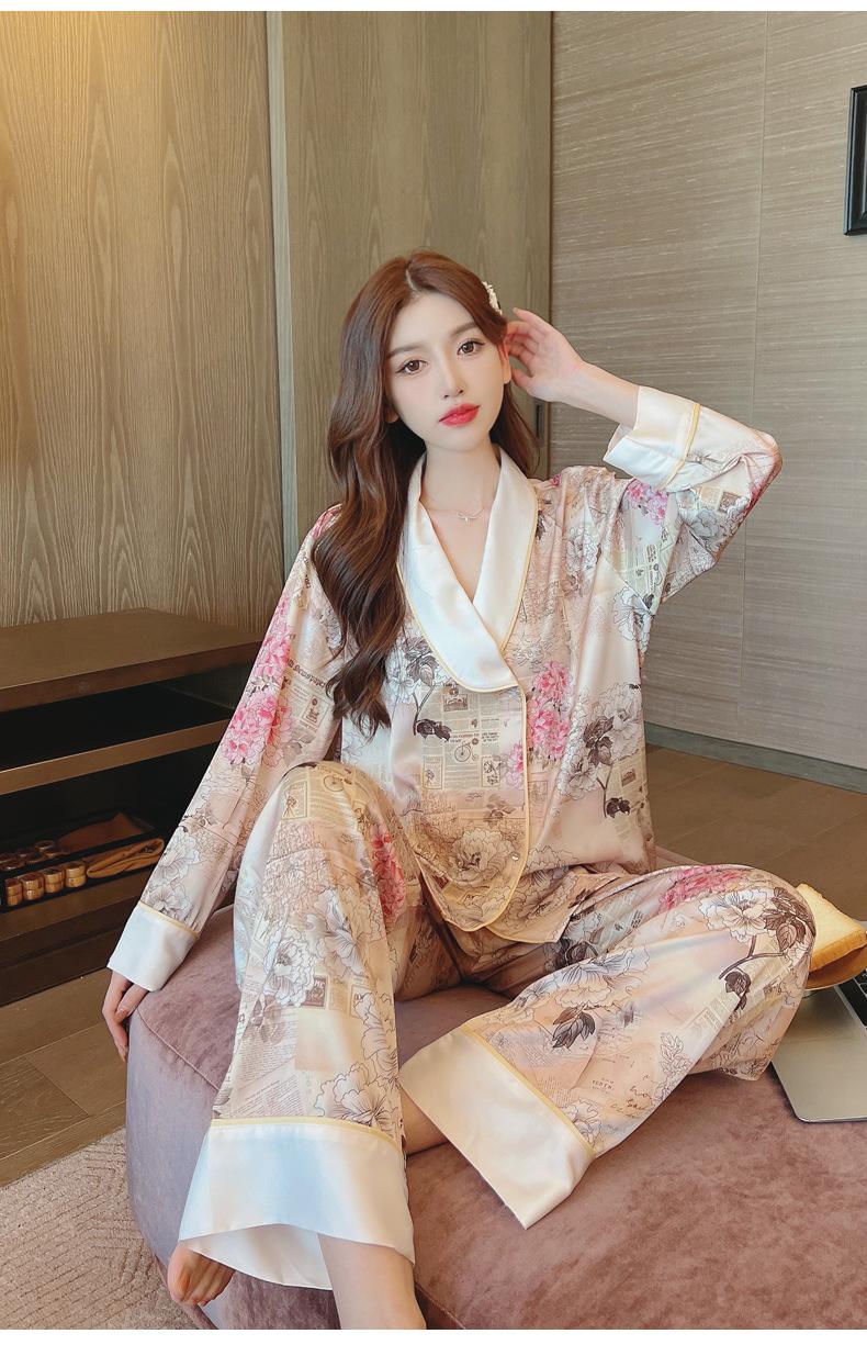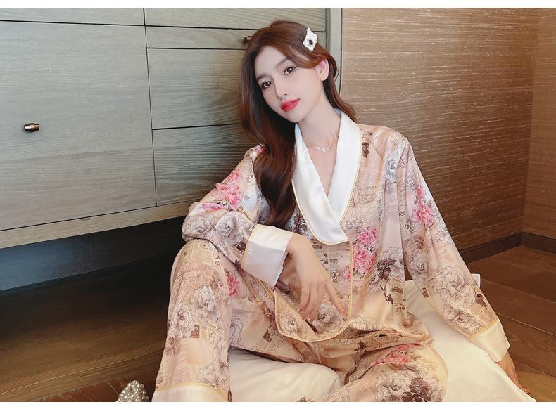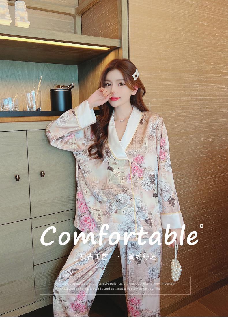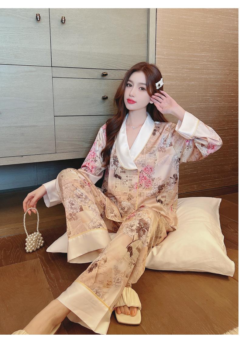 Pijamas de cuello grande de celebridades de Internet para mujer, primavera, seda de hielo, estilo coreano, sueltos, de alta gama, de moda, pantalones de manga larga, ropa para el hogar, TikTok para mujer