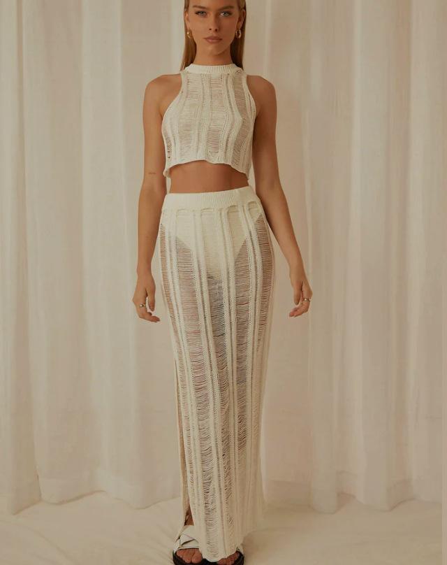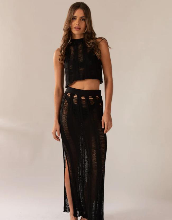 24 nuevas faldas largas de comercio exterior transfronterizo, faldas de playa con perspectiva hueca para chicas sexys y calientes, faldas de media vida tejidas junto al mar de súper hadas para mujer