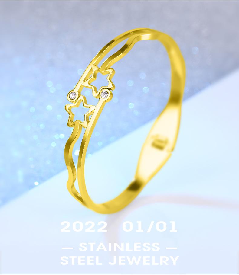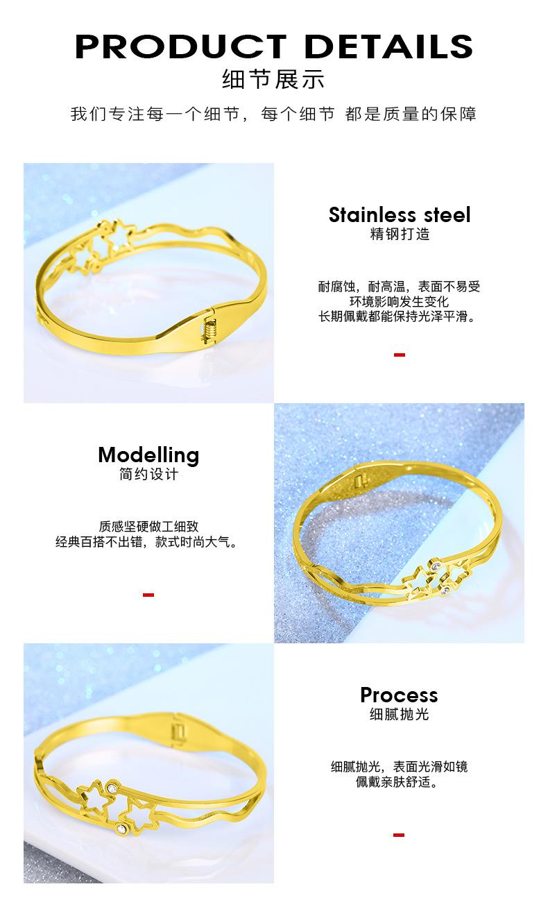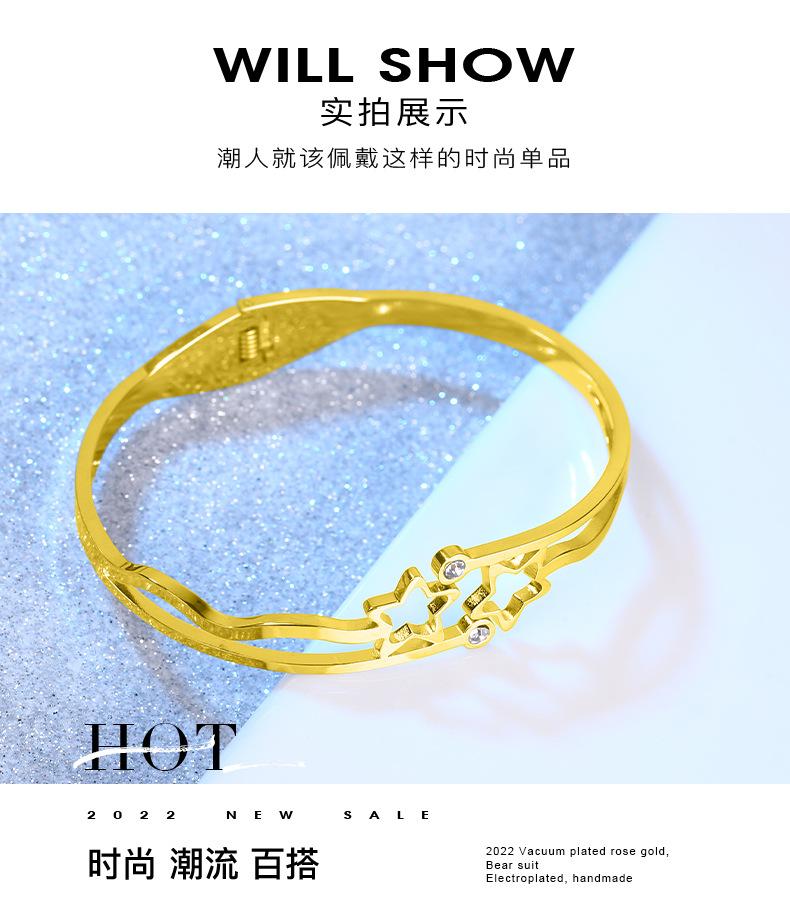 Diseño nicho pulsera de acero inoxidable con circonita estrella de cinco puntas pequeña fresca acero titanio doble estrella pulsera hueca joyería para mujer