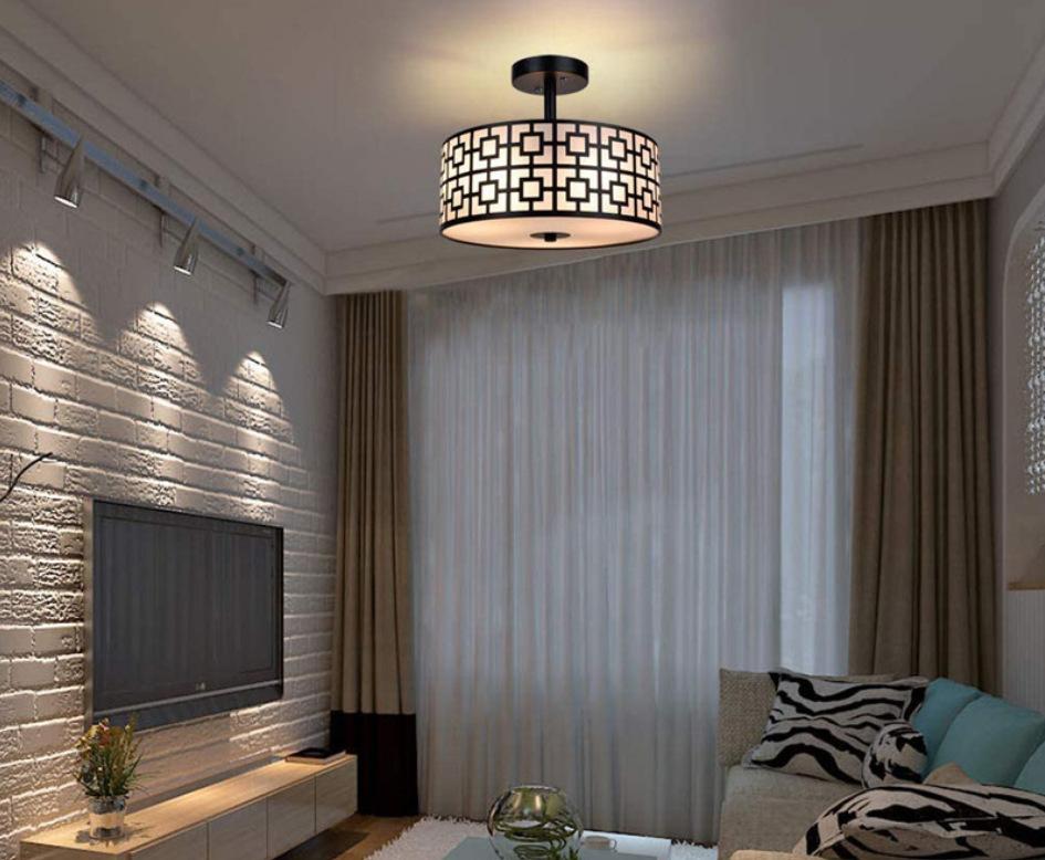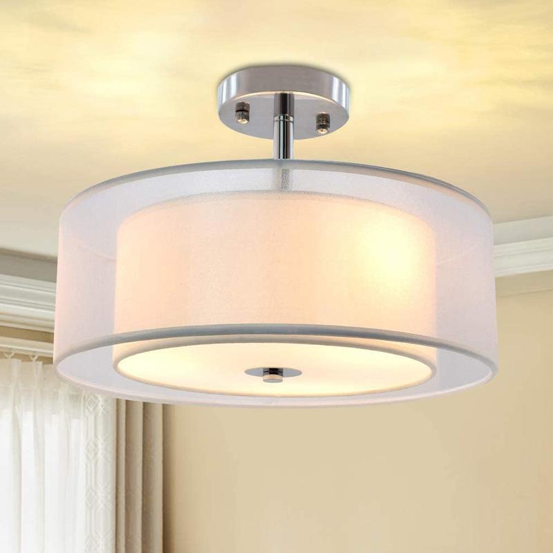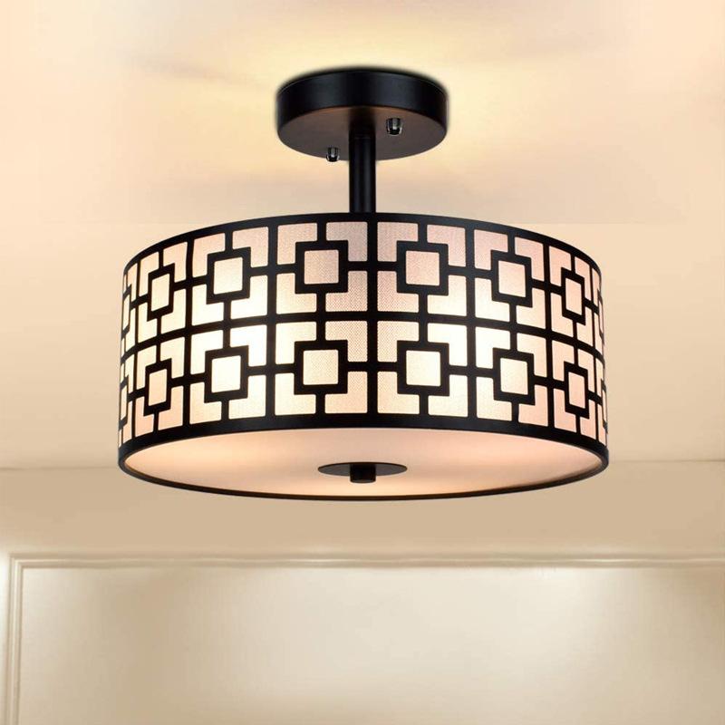 Lámpara de techo americana retro redonda de tela para restaurante, dormitorio, estudio, Amazon New Home, exclusiva transfronteriza