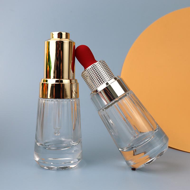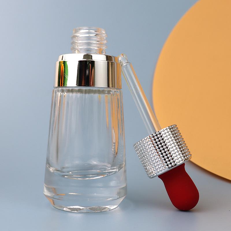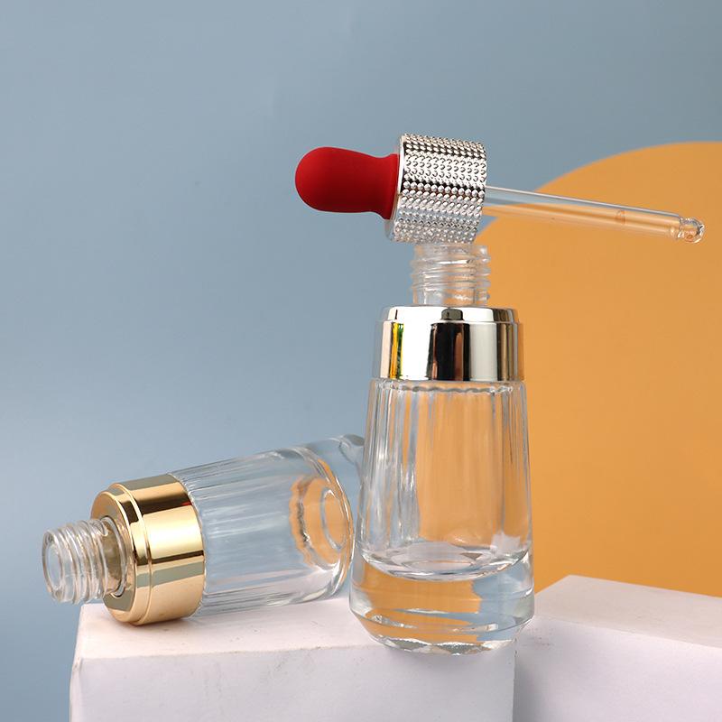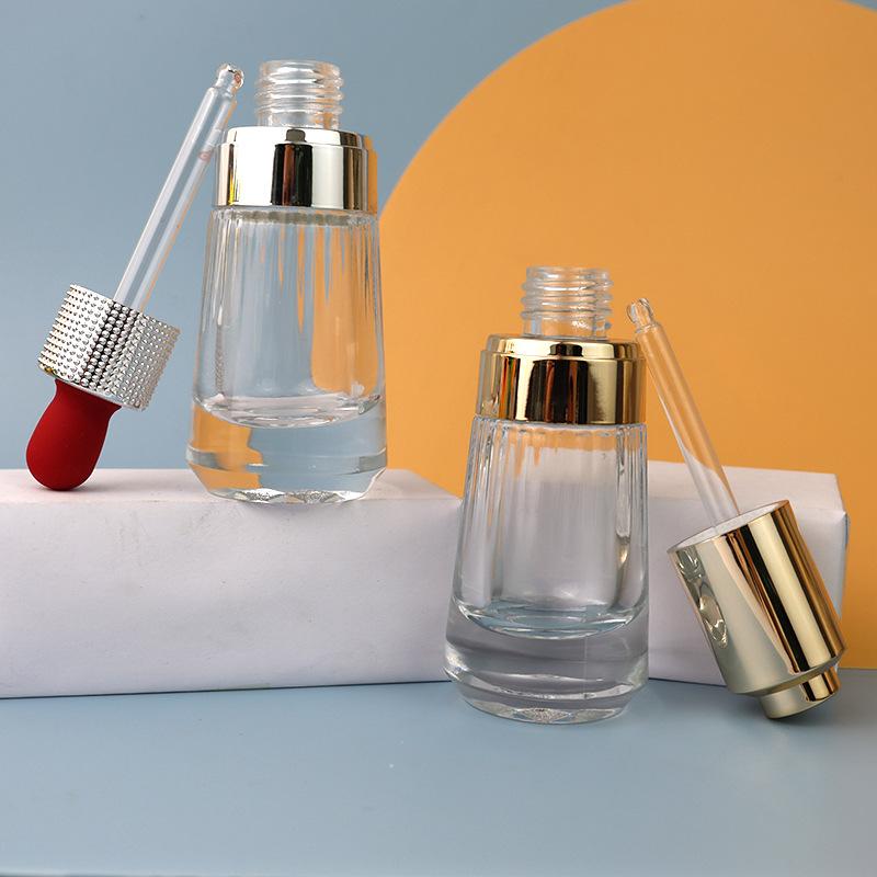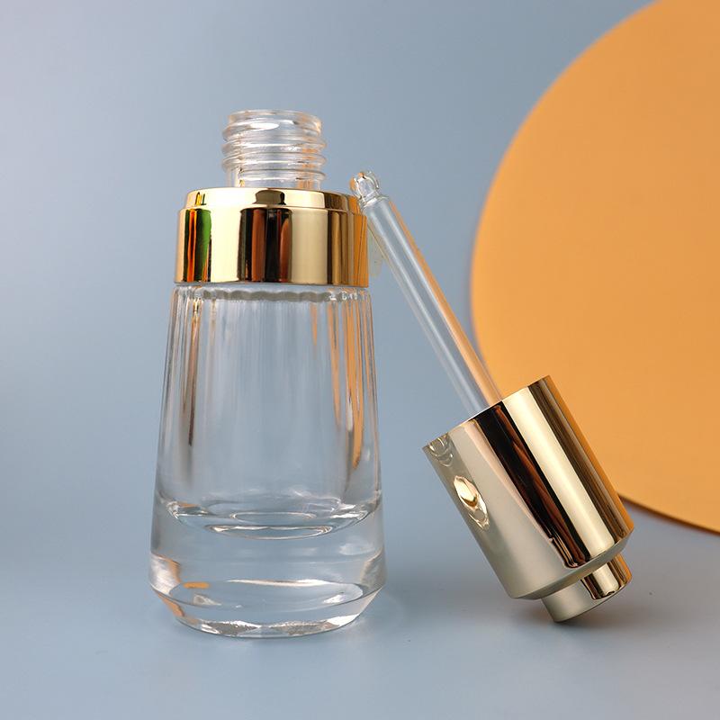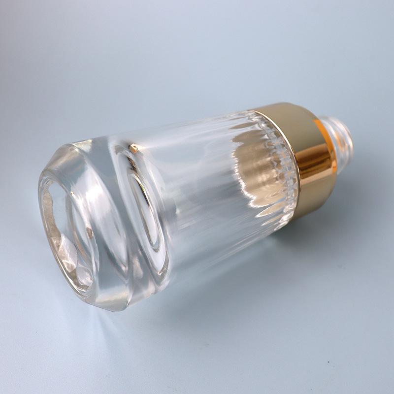 Fábrica al por mayor, botella de aceite transparente dividida, botella vacía, suministro puntual, vidrio cosmético dividido, jarrón solar