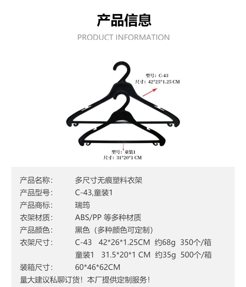 Black plastic clothes hanger c-43, Black children's clothing plastic clothes hanger children's clothing 1