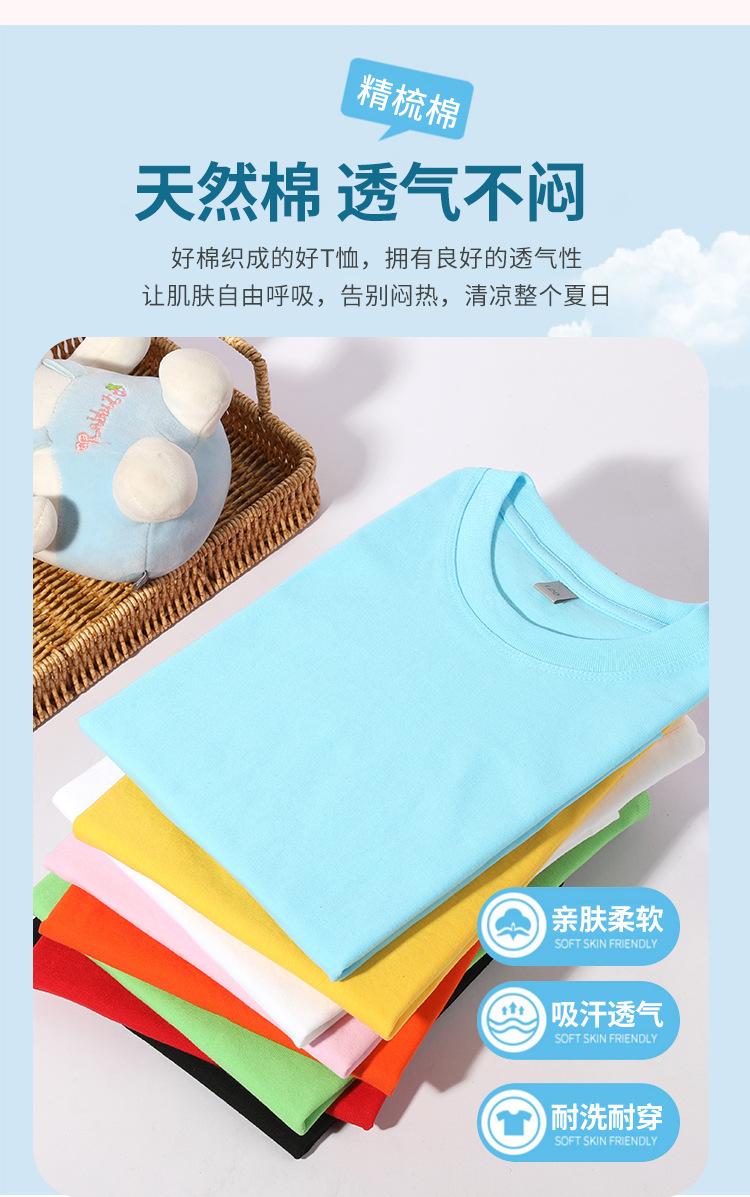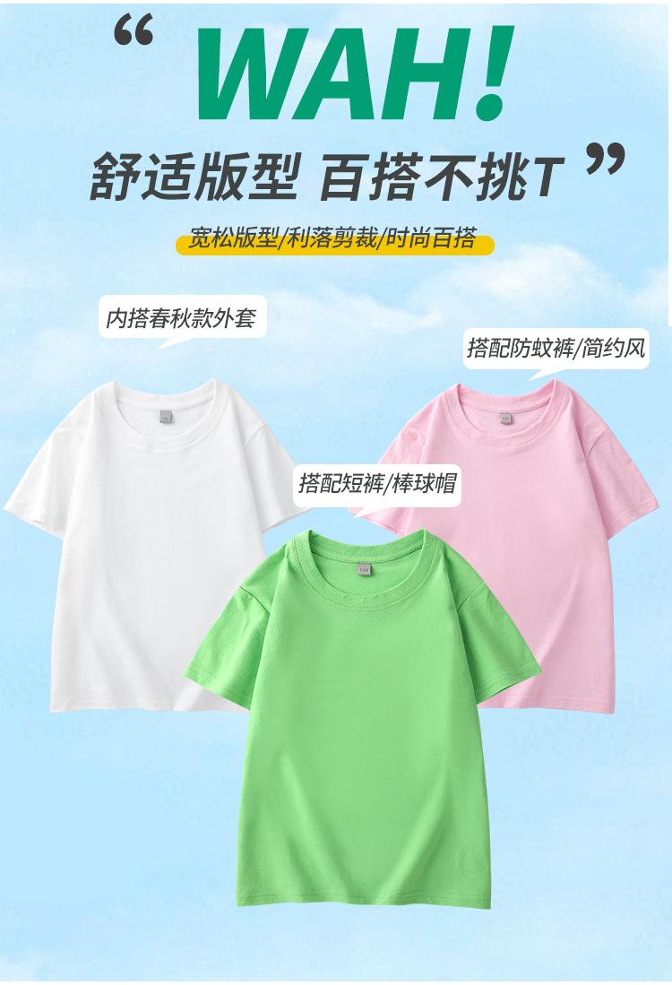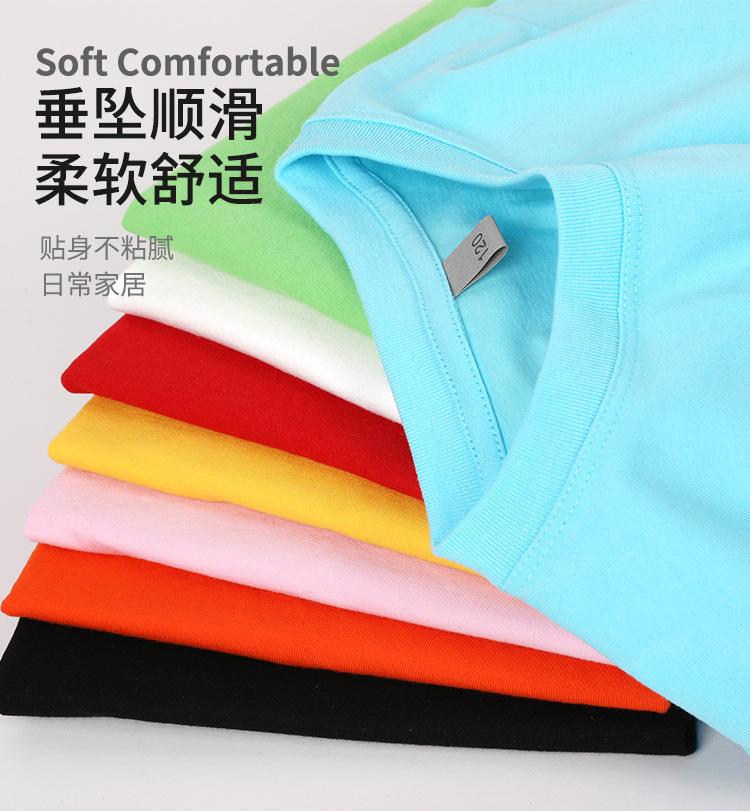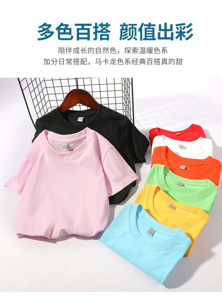 Camiseta de algodón de 180 g para niños y niñas, de manga corta, de color puro, con logotipo impreso personalizado.