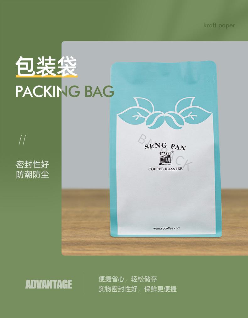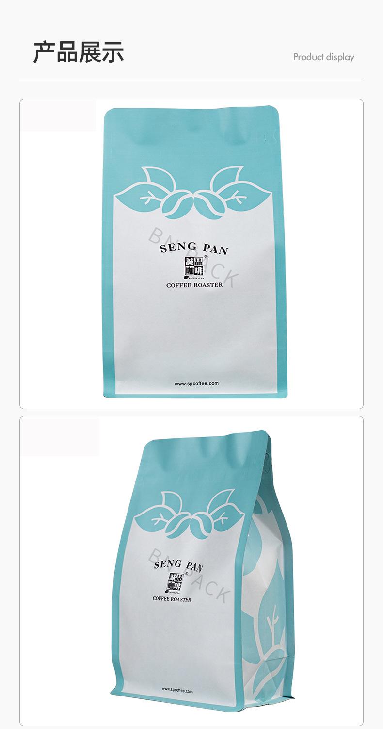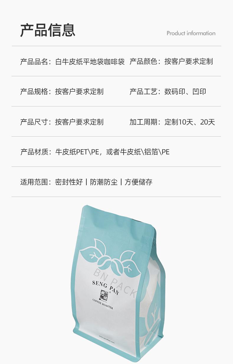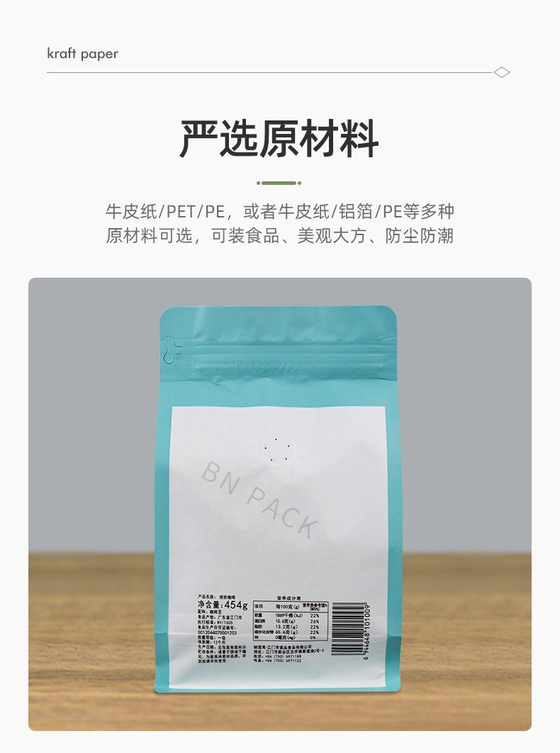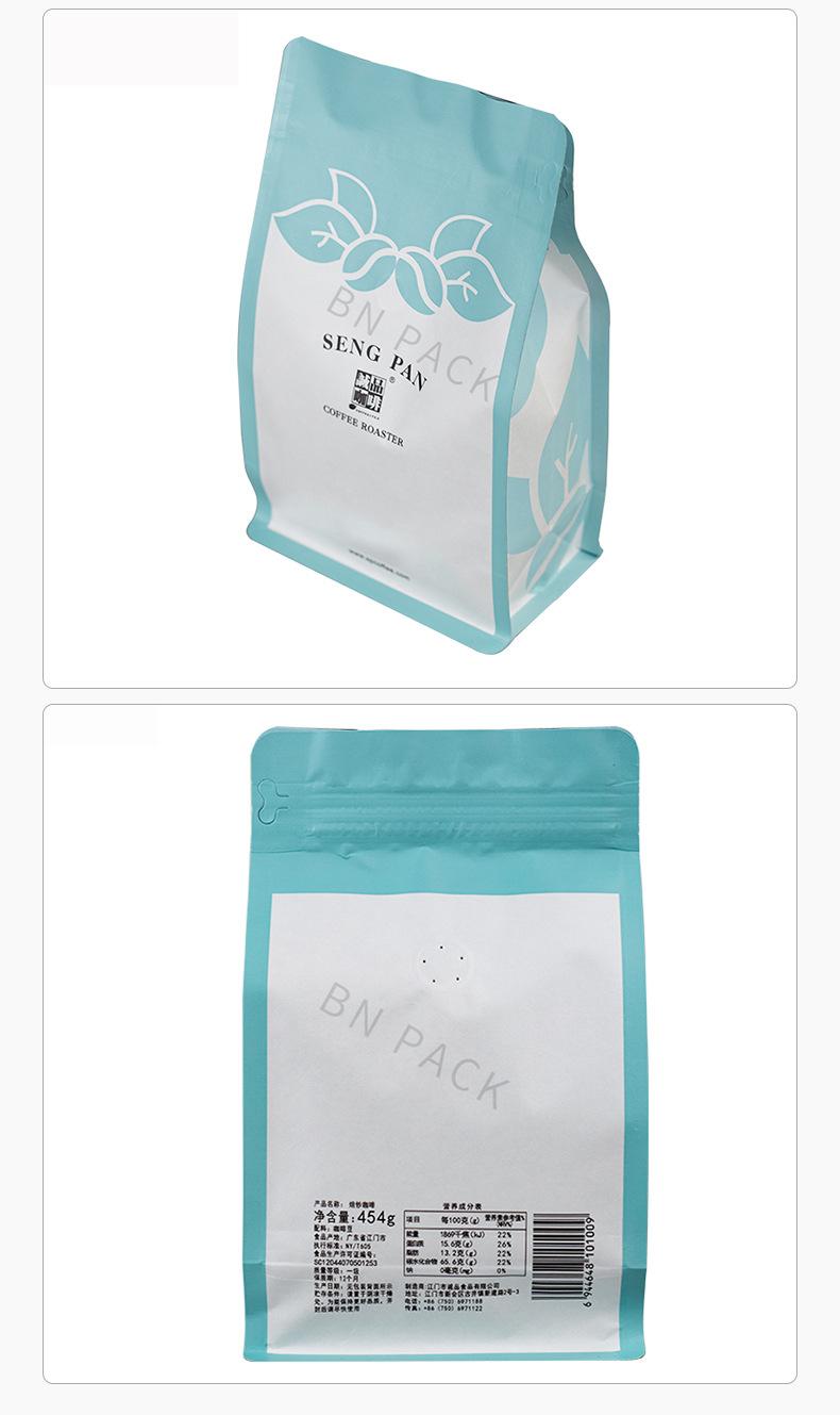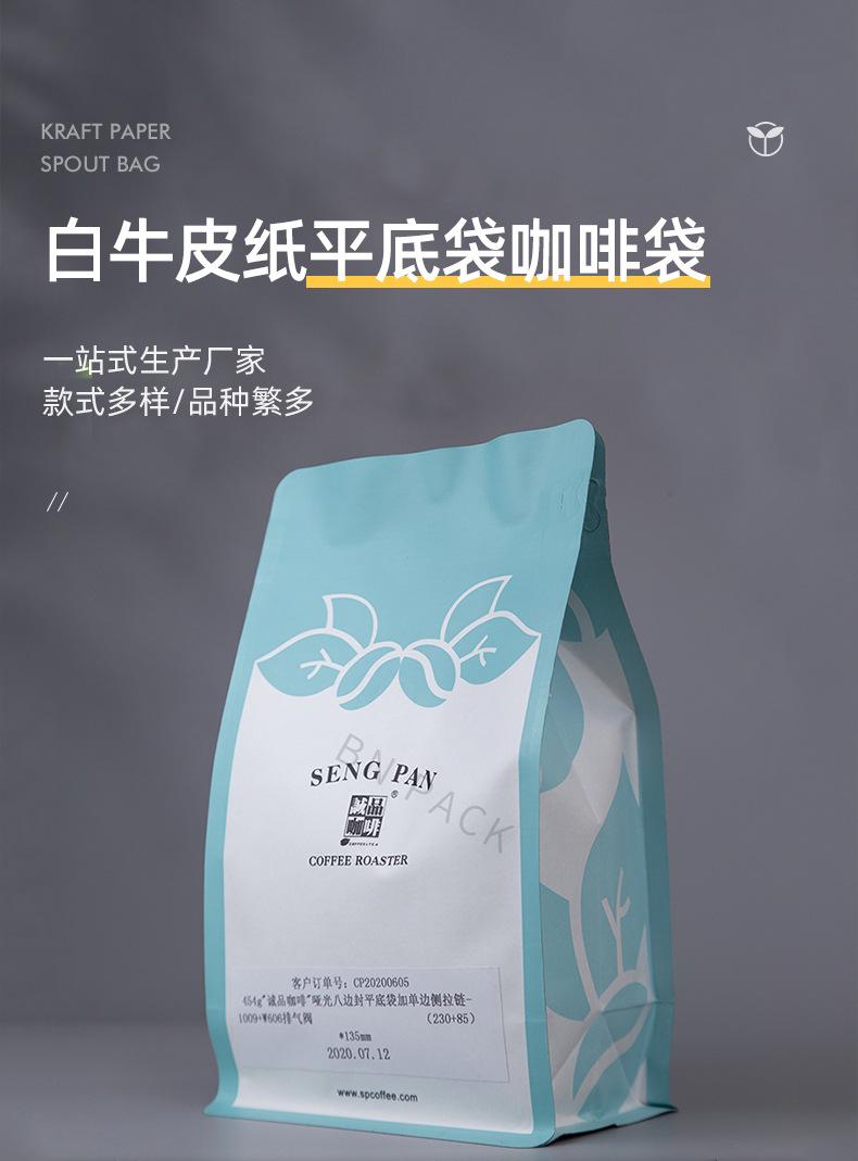 Bolsa de fondo plano de papel Kraft blanco bolsa de media libra para granos de café bolsa con válvula de aire de punto bolsa de papel Kraft con lámina de aluminio bolsa de embalaje con sello de ocho lados