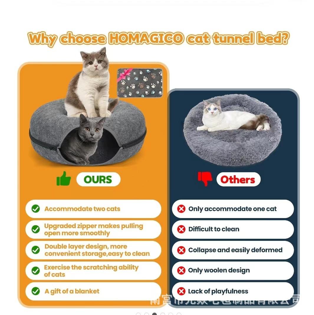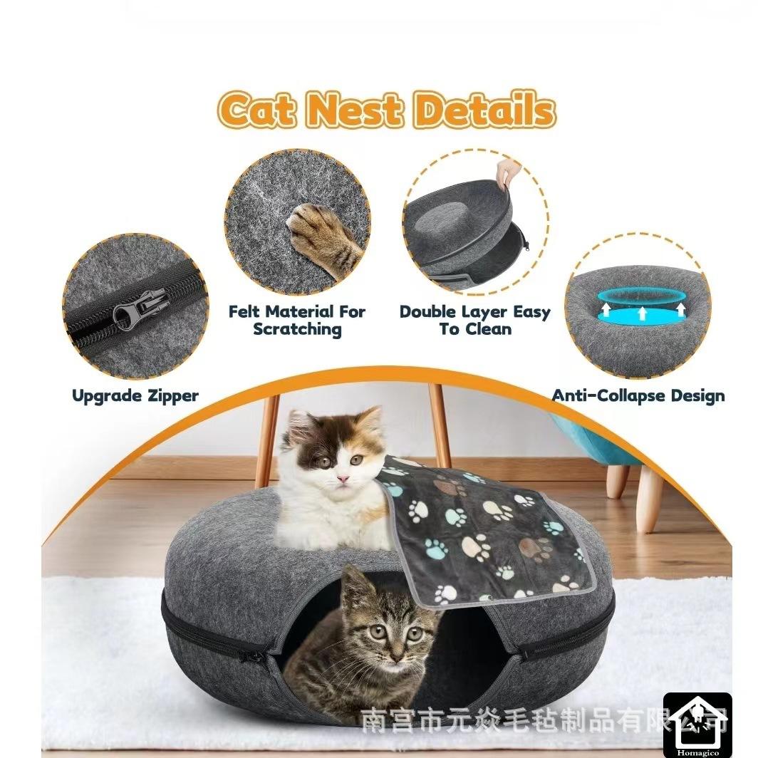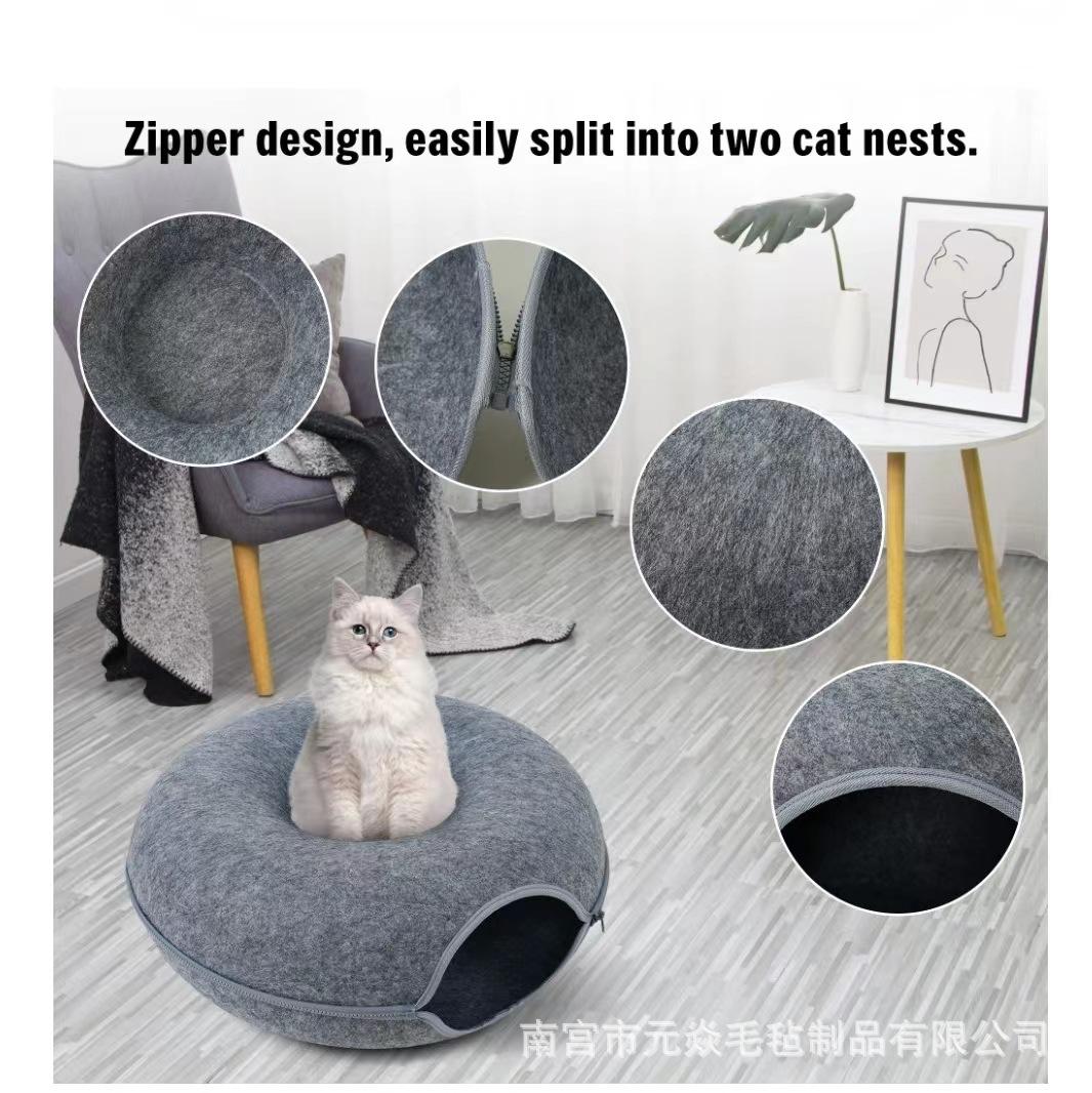 Nido para Mascotas con Cremallera Personalizado Nido para Gatos Productos de Fieltro Nido de Fieltro para Mascotas Túnel de Fieltro de una Pieza Nido de Fieltro para Gatos