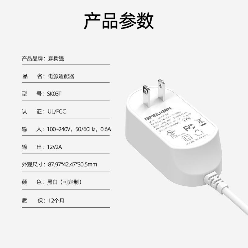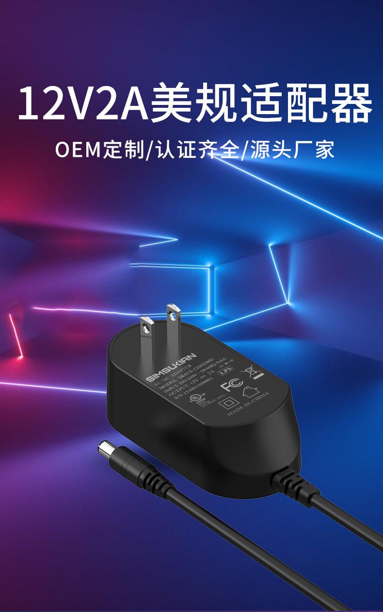 Adaptador de corriente 12v2a 24w estándar estadounidense luz LED con fuente de alimentación de robot AI adaptador de corriente para monitoreo de seguridad
