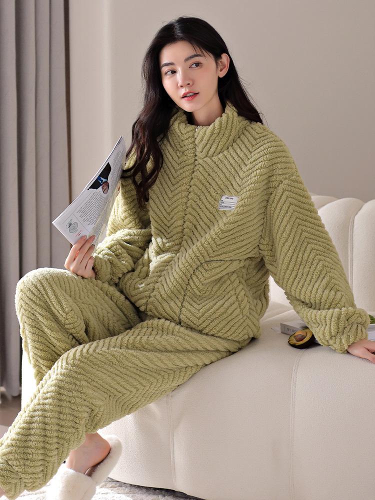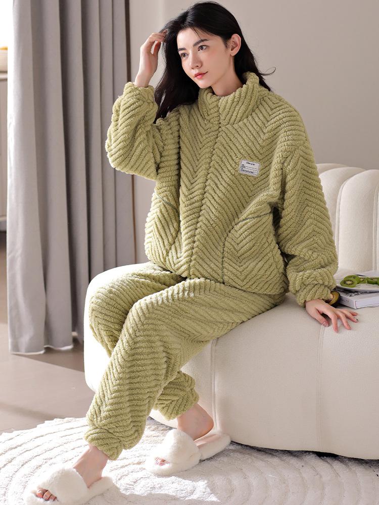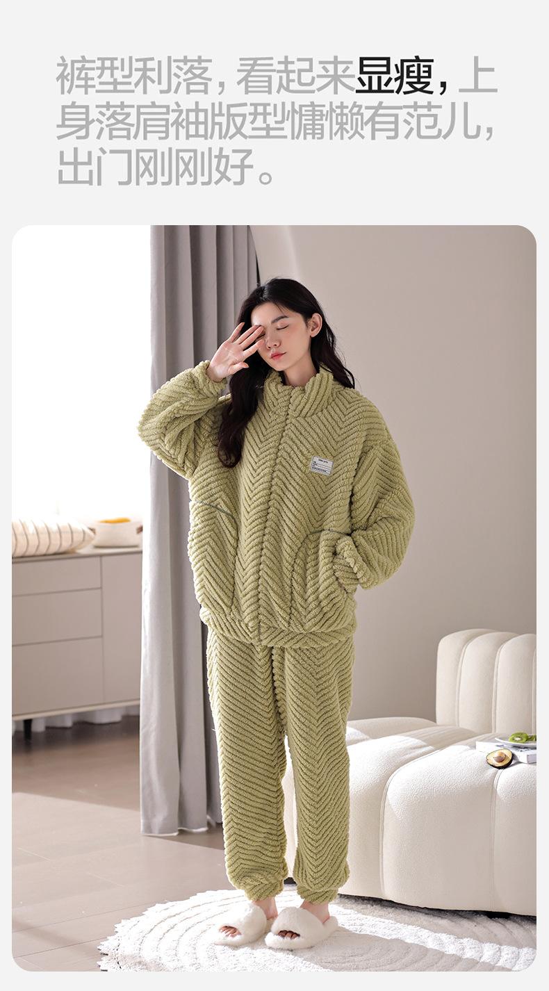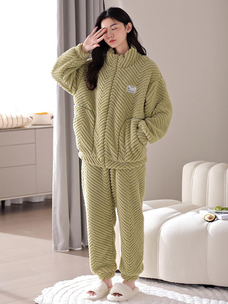 Nuevo pijama de invierno para mujer, cárdigan de franela con forro polar grueso, cálido, sencillo, holgado, para el hogar, traje de talla grande