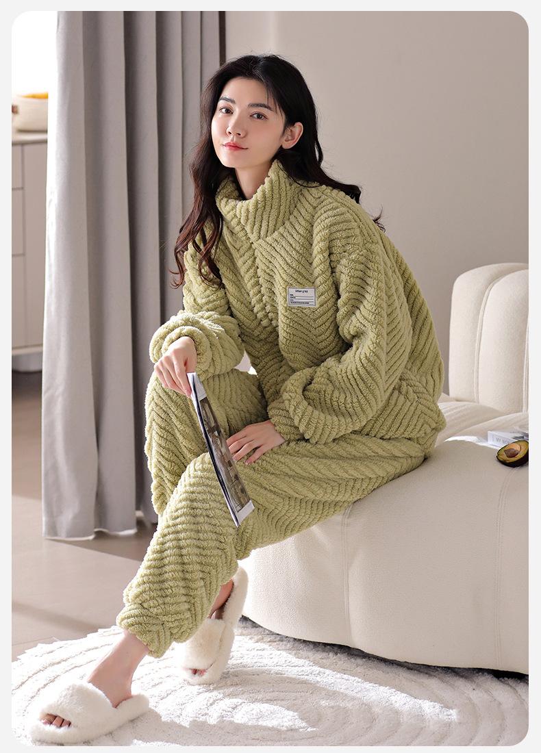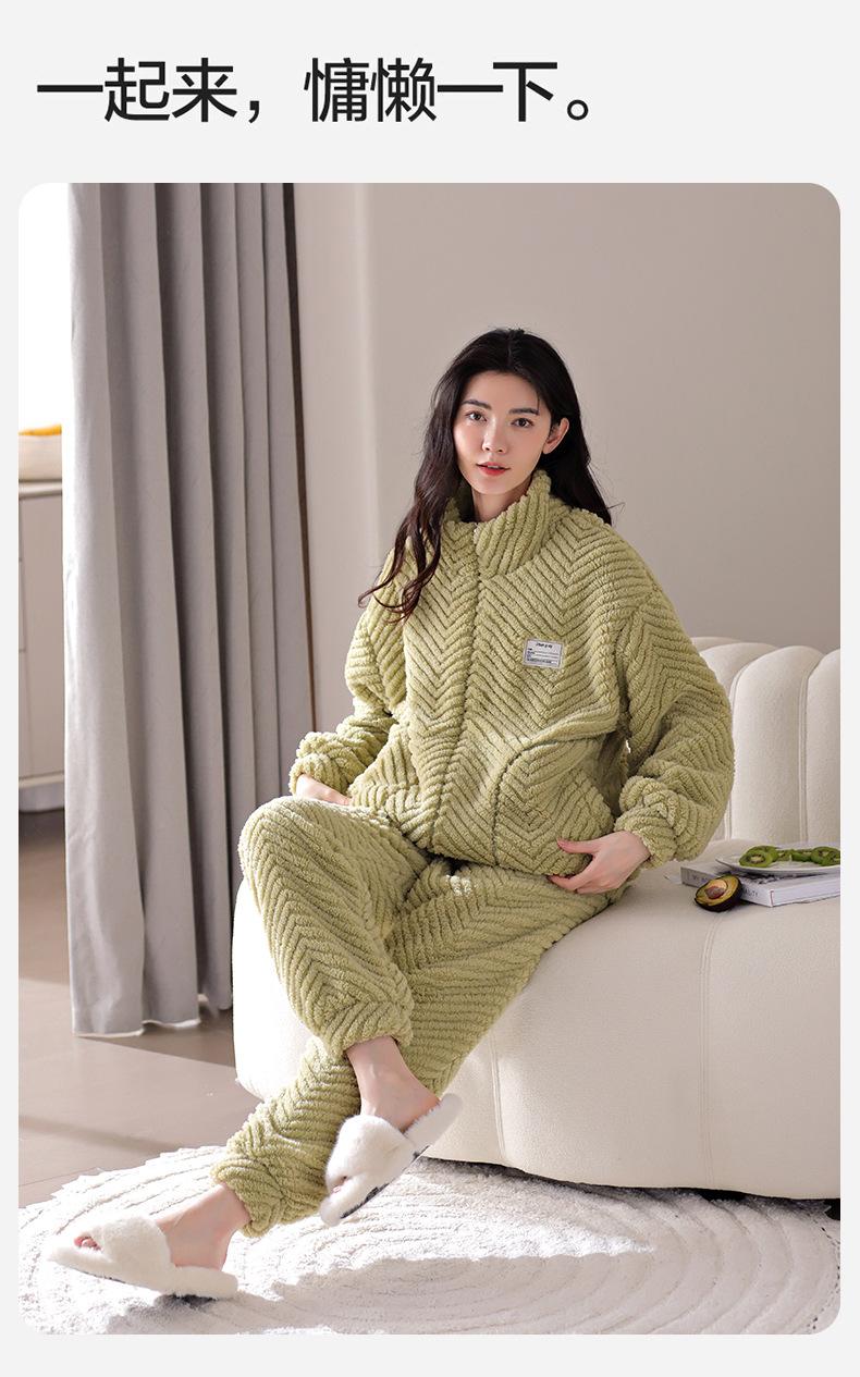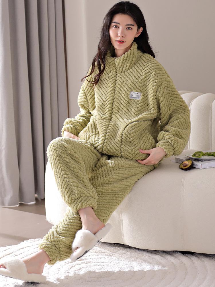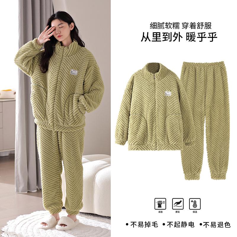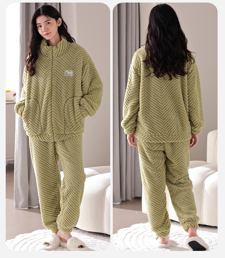 Nuevo pijama de invierno para mujer, cárdigan de franela con forro polar grueso, cálido, sencillo, holgado, para el hogar, traje de talla grande