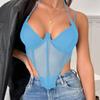 Verano Nuevo Estilo Europeo y Americano Malla Transparente Aro de Acero Top-Up Corsé Ballena Sexy a la Moda Ropa Exterior Sujetador Pequeño de Tirantes