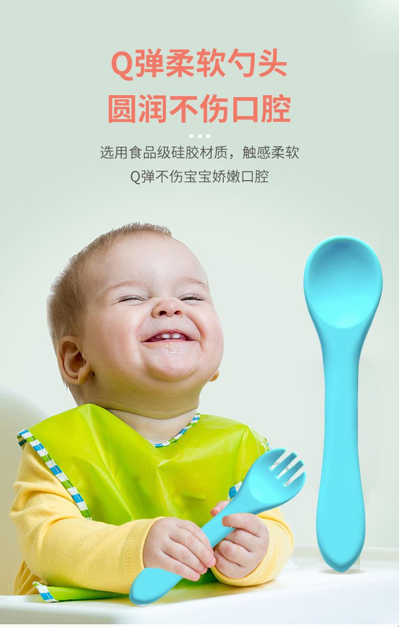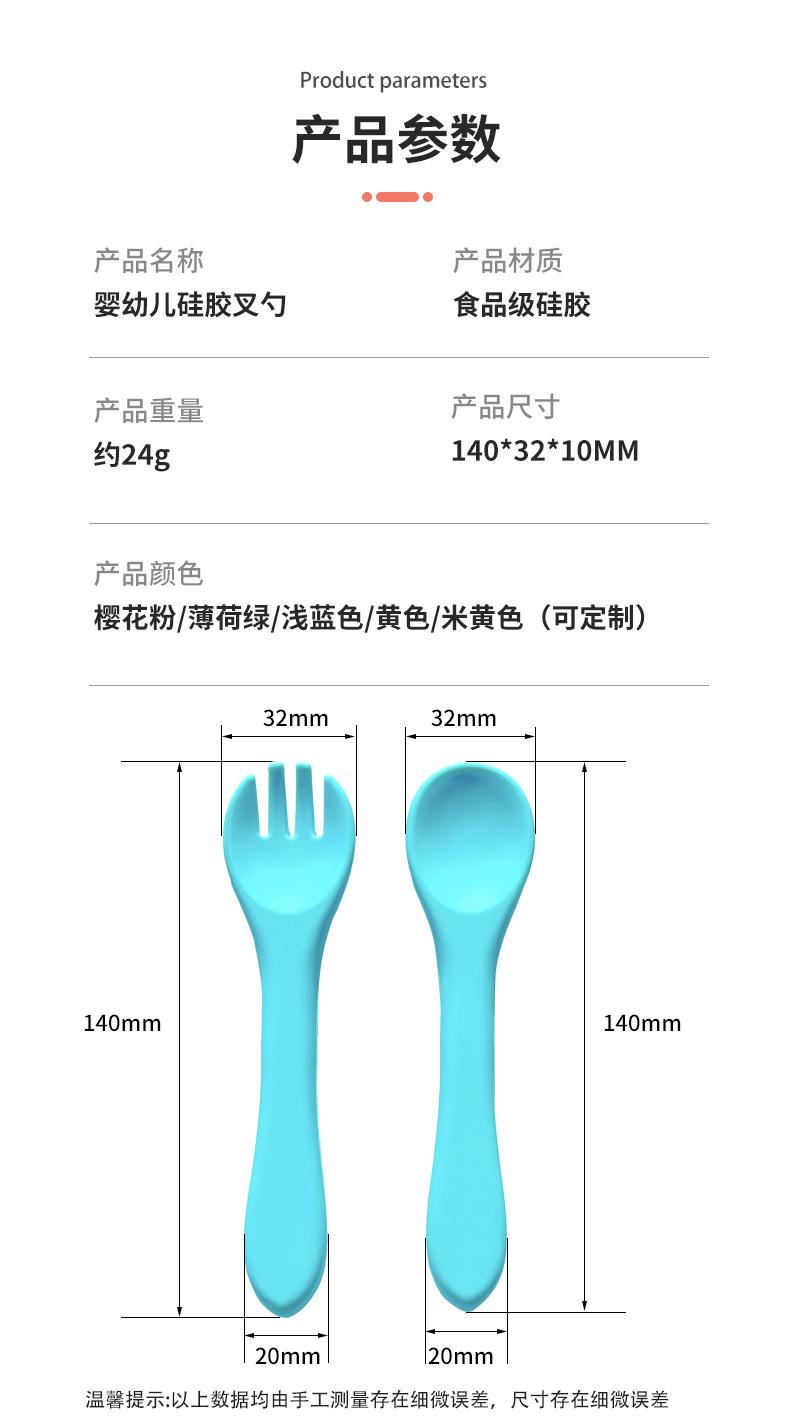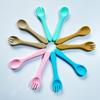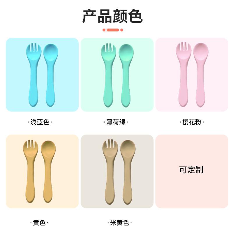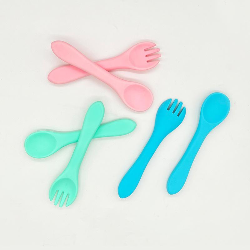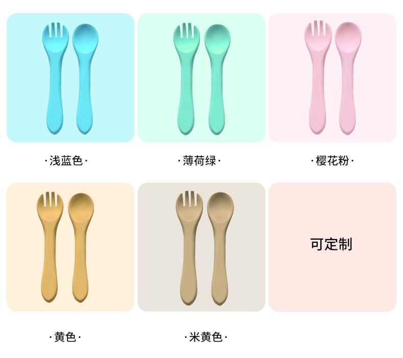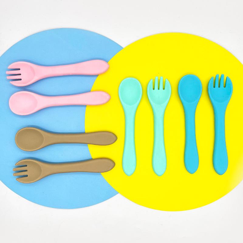 Tenedor y cuchara de silicona para niños, cuchara de entrenamiento para comer, tenedor de mango corto, juego de vajilla para lamer y comer en la escuela.