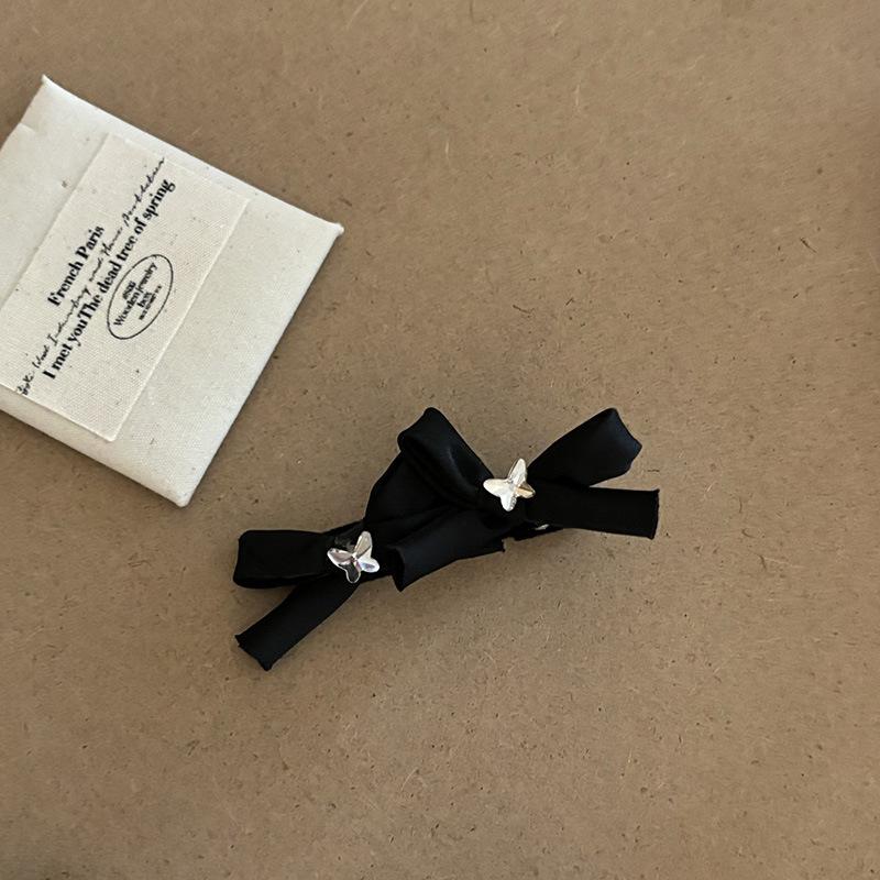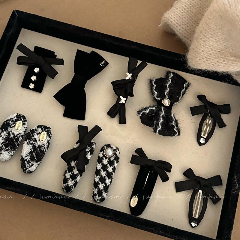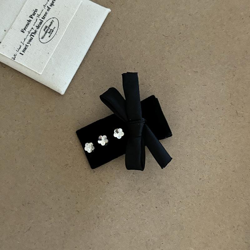 5# black bow hairpin single pack, 8# black bow three-diamond hairpin