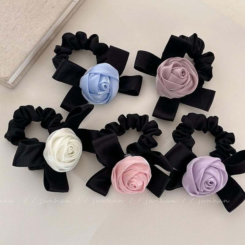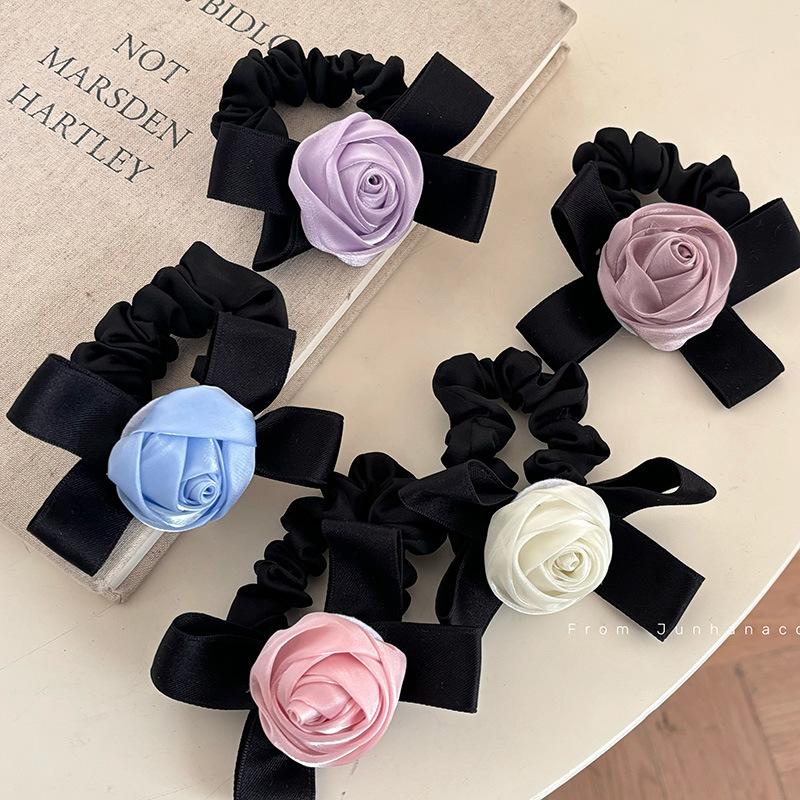 2# light purple Rose Bow Hair Rope, 3# blue rose bow hair rope, 4# pink rose bow hair rope, 5# white rose bow hair rope