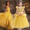 Vestido nuevo europeo y americano con pequeñas mangas voladoras y falda grande, falda de tul de malla, vestido de niña de Cenicienta congelada