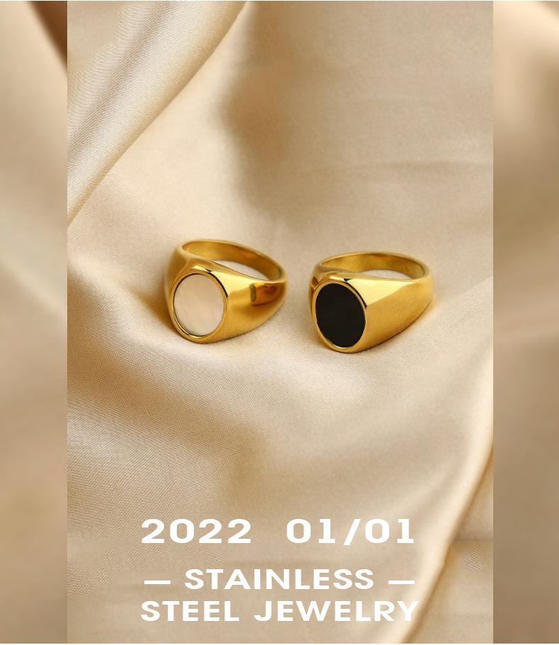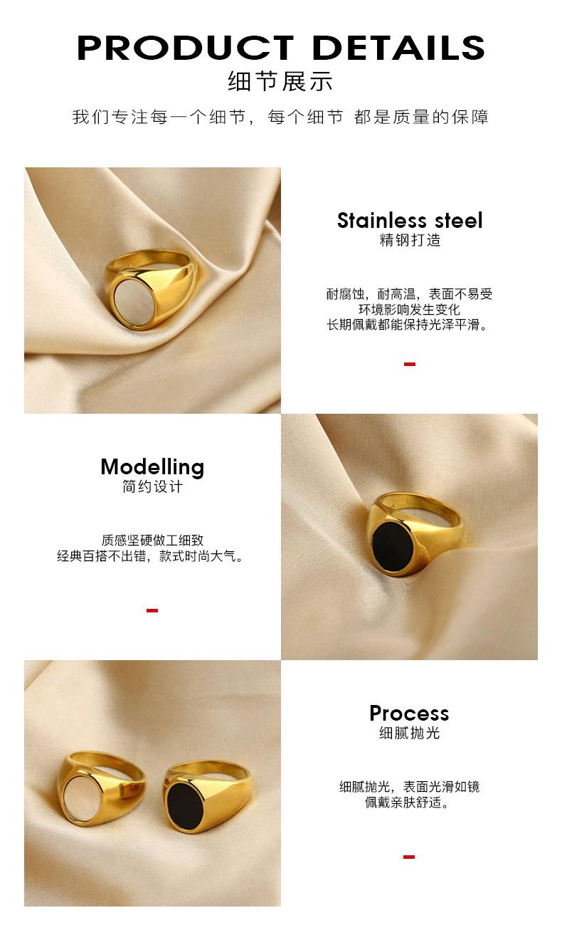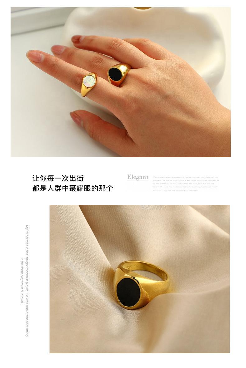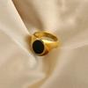 Anillo de aleación de titanio con pegamento de gota negra estilo europeo y americano, anillo de acero inoxidable para niñas, anillo geométrico simple de oro