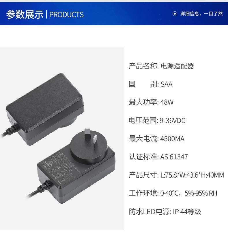 Adaptador de corriente estándar australiano de 48 W, enchufe de carga, fuente de alimentación impermeable IP44, 4500 mA.
