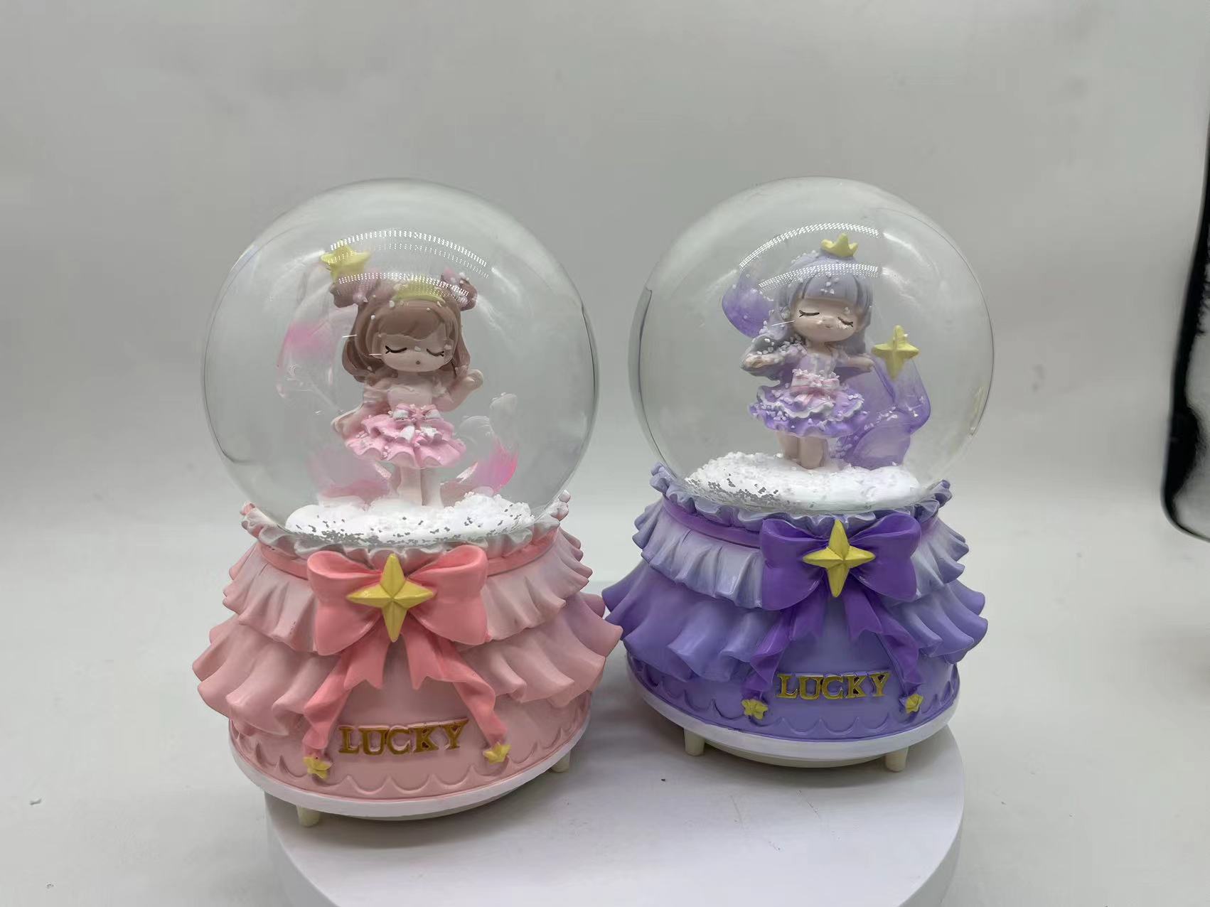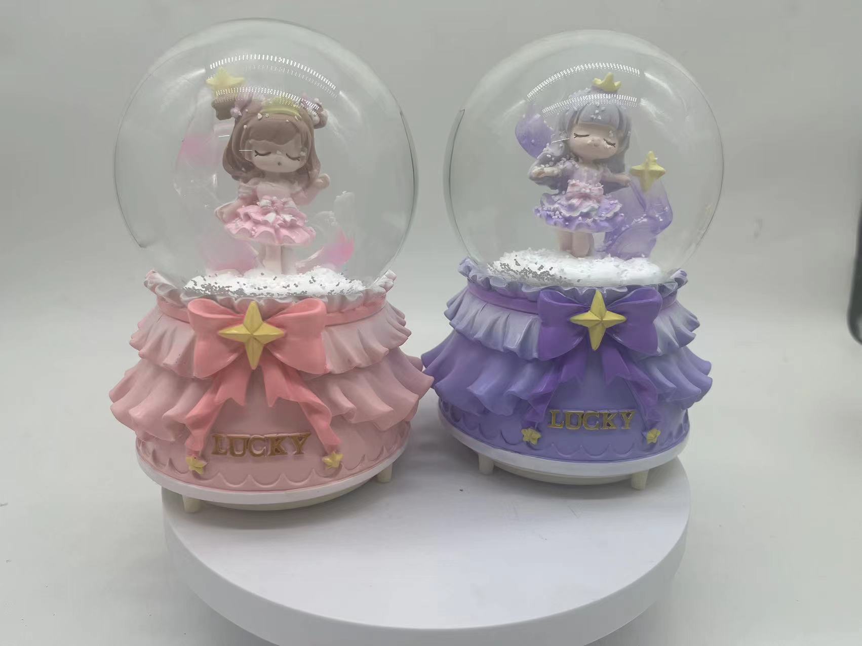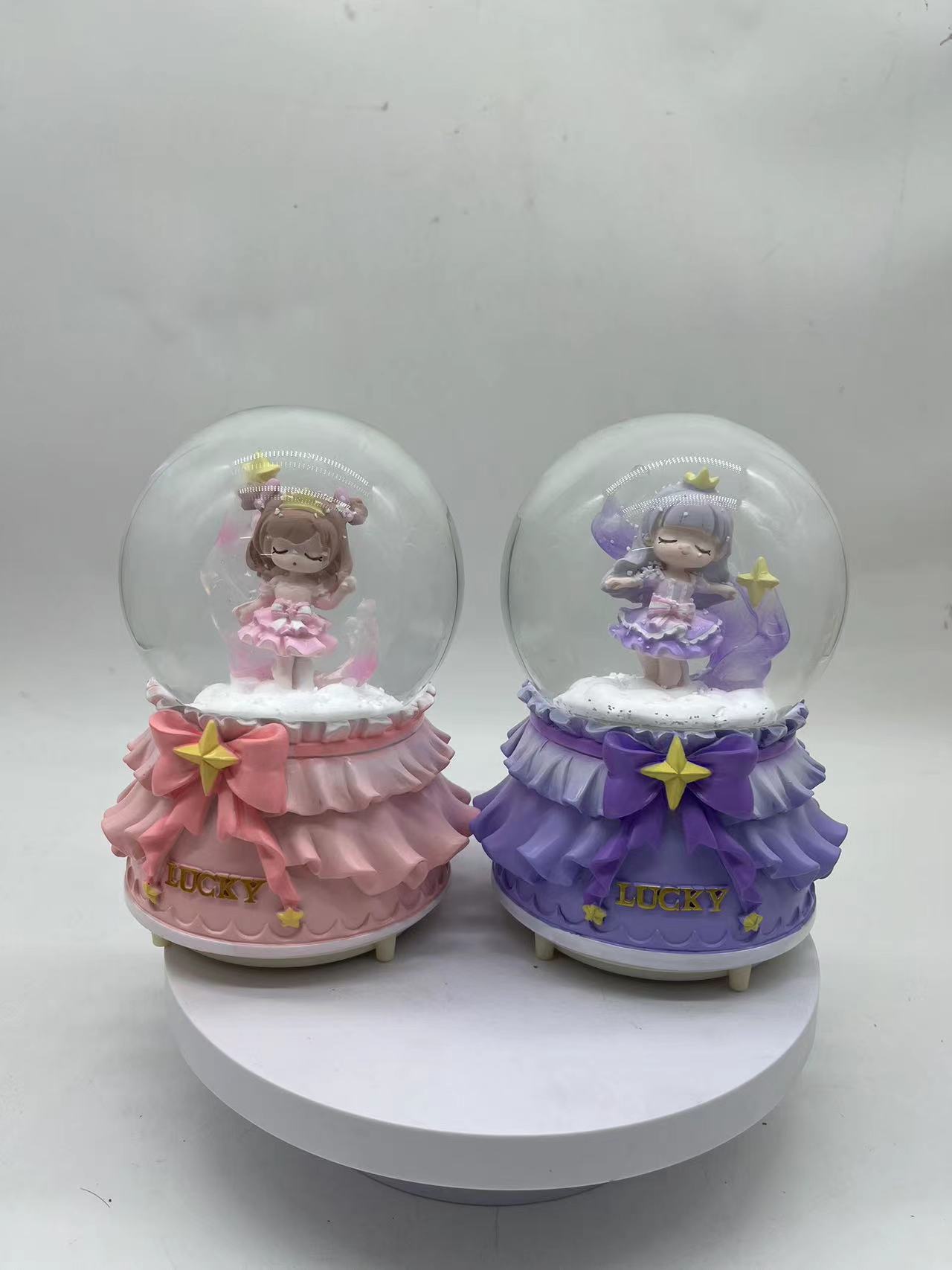 Bola de cristal luminosa de dibujos animados creativa para niña, decoración de escritorio, bola de agua con música de nieve, decoración del hogar, artesanía de resina