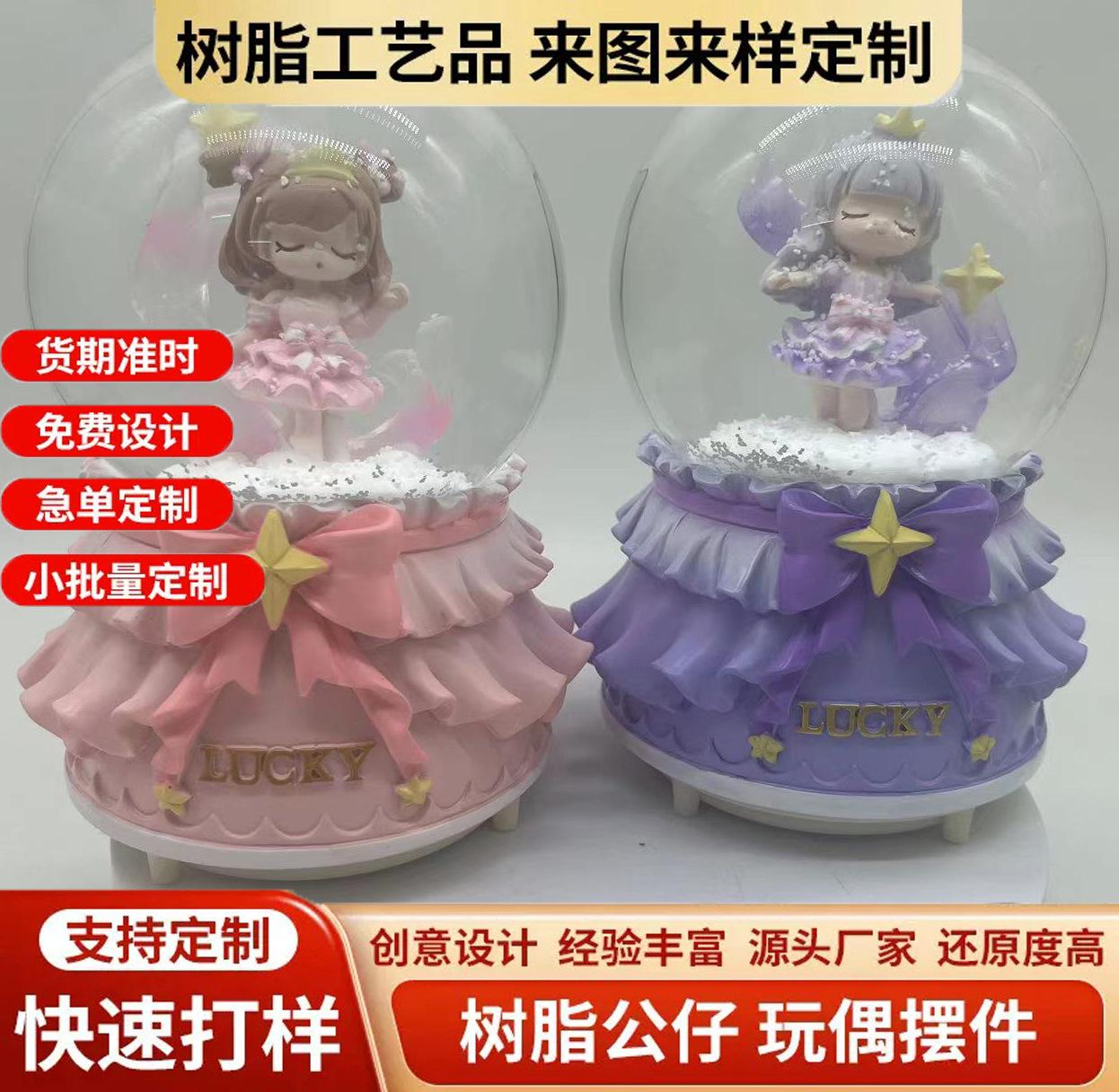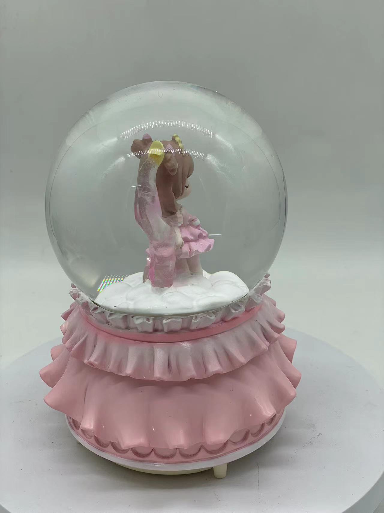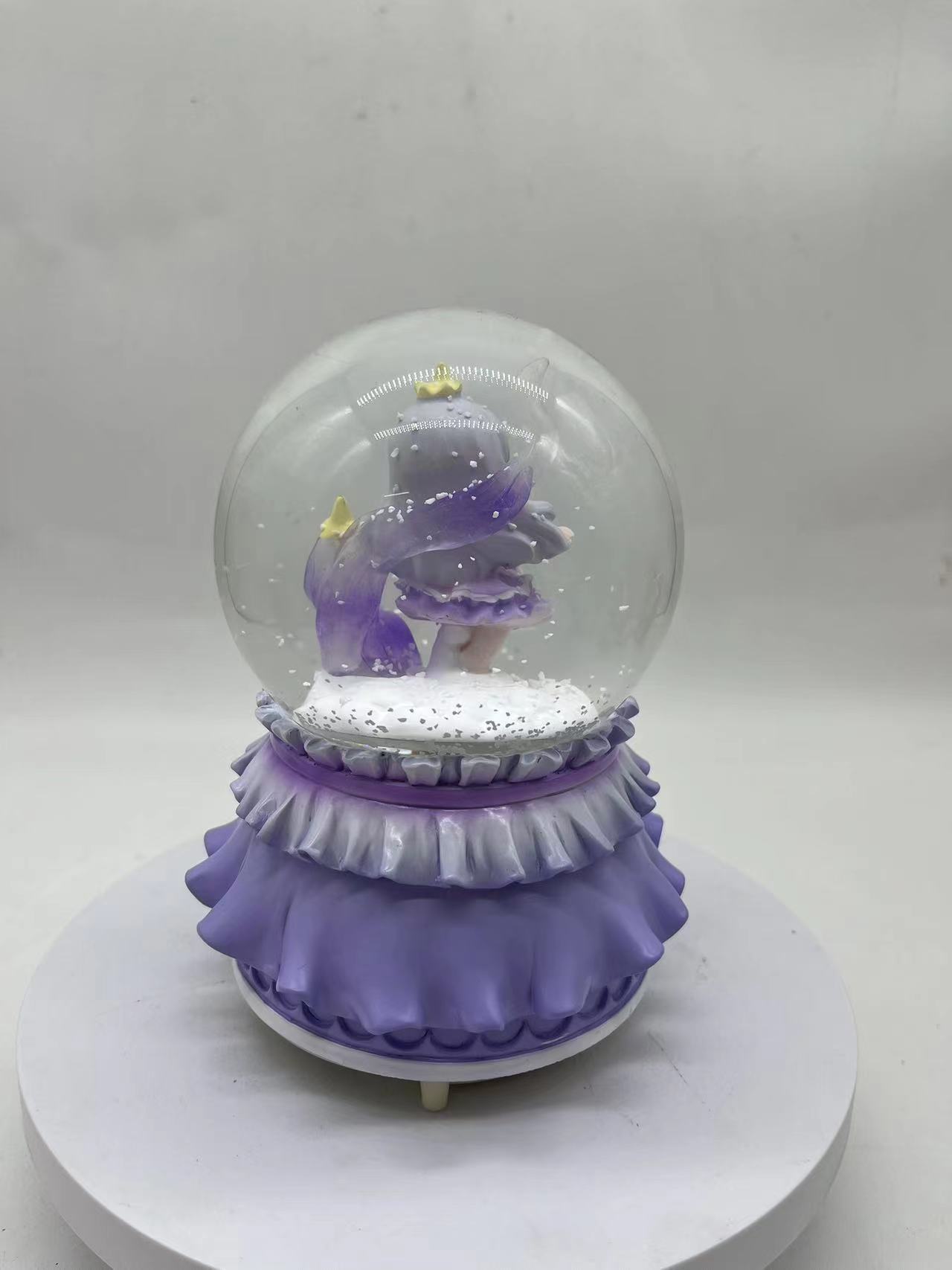 Bola de cristal luminosa de dibujos animados creativa para niña, decoración de escritorio, bola de agua con música de nieve, decoración del hogar, artesanía de resina