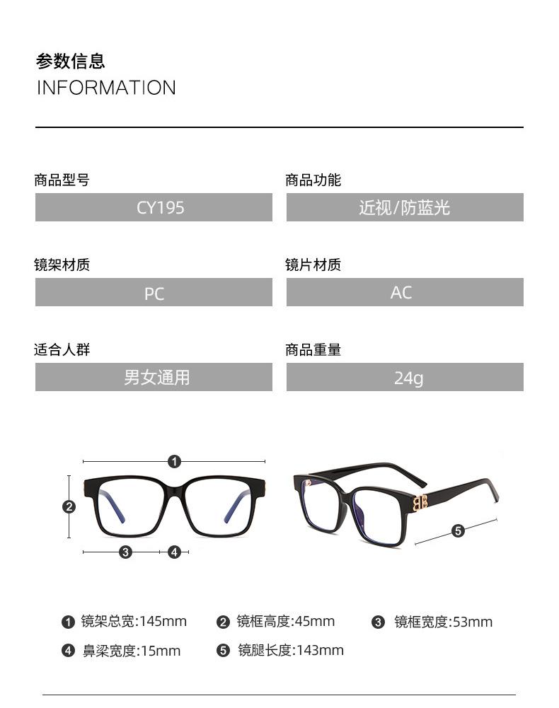 Gafas de estilo coreano con diseño de celebridades de Internet, estilo nuevo, para mujer, de cara redonda, antiluz azul, sencillas, con montura para miopía y a prueba de radiación.