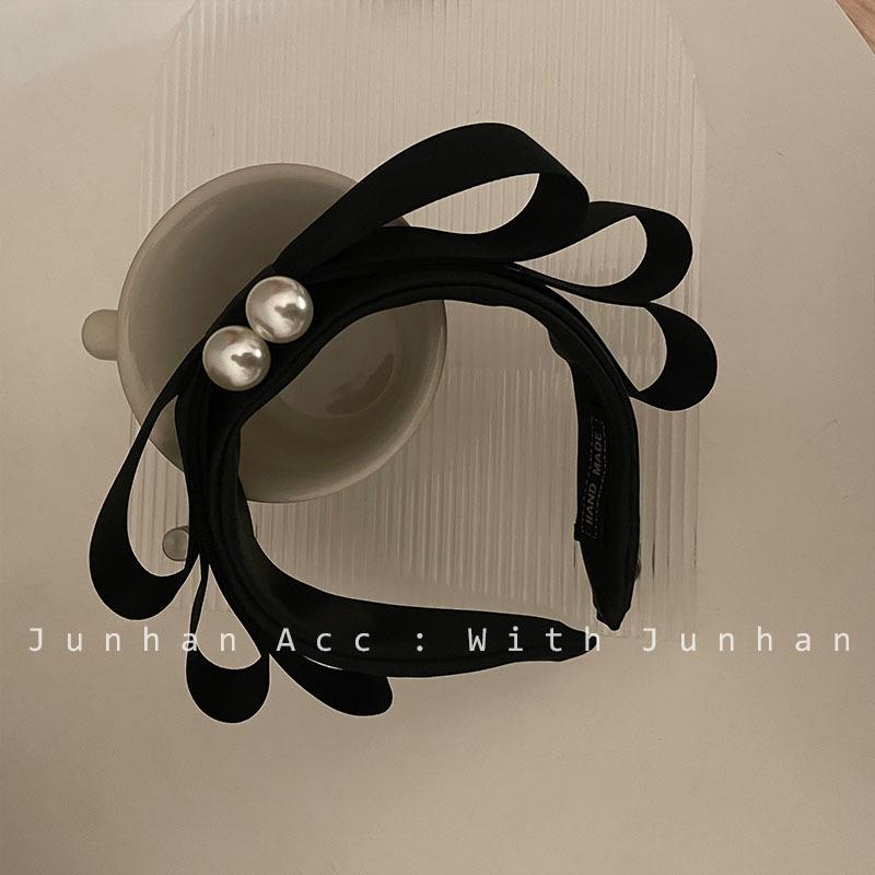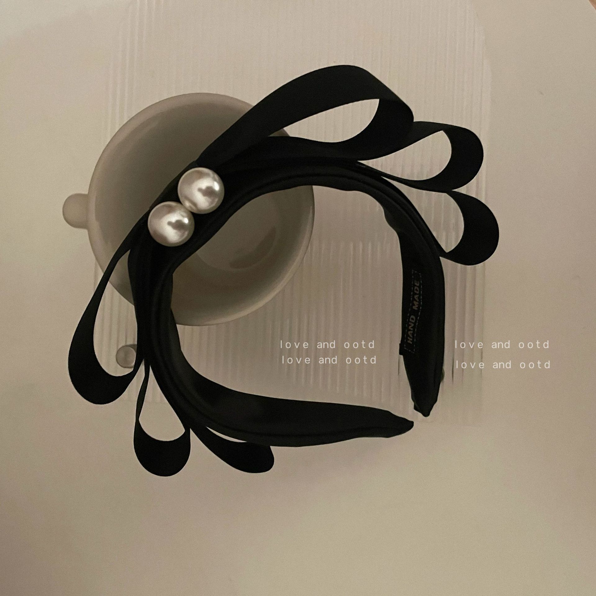 Diadema con lazo estilo francés con perla grande, disco para prensar el cabello, accesorios para el cabello con clip, diadema para mujer